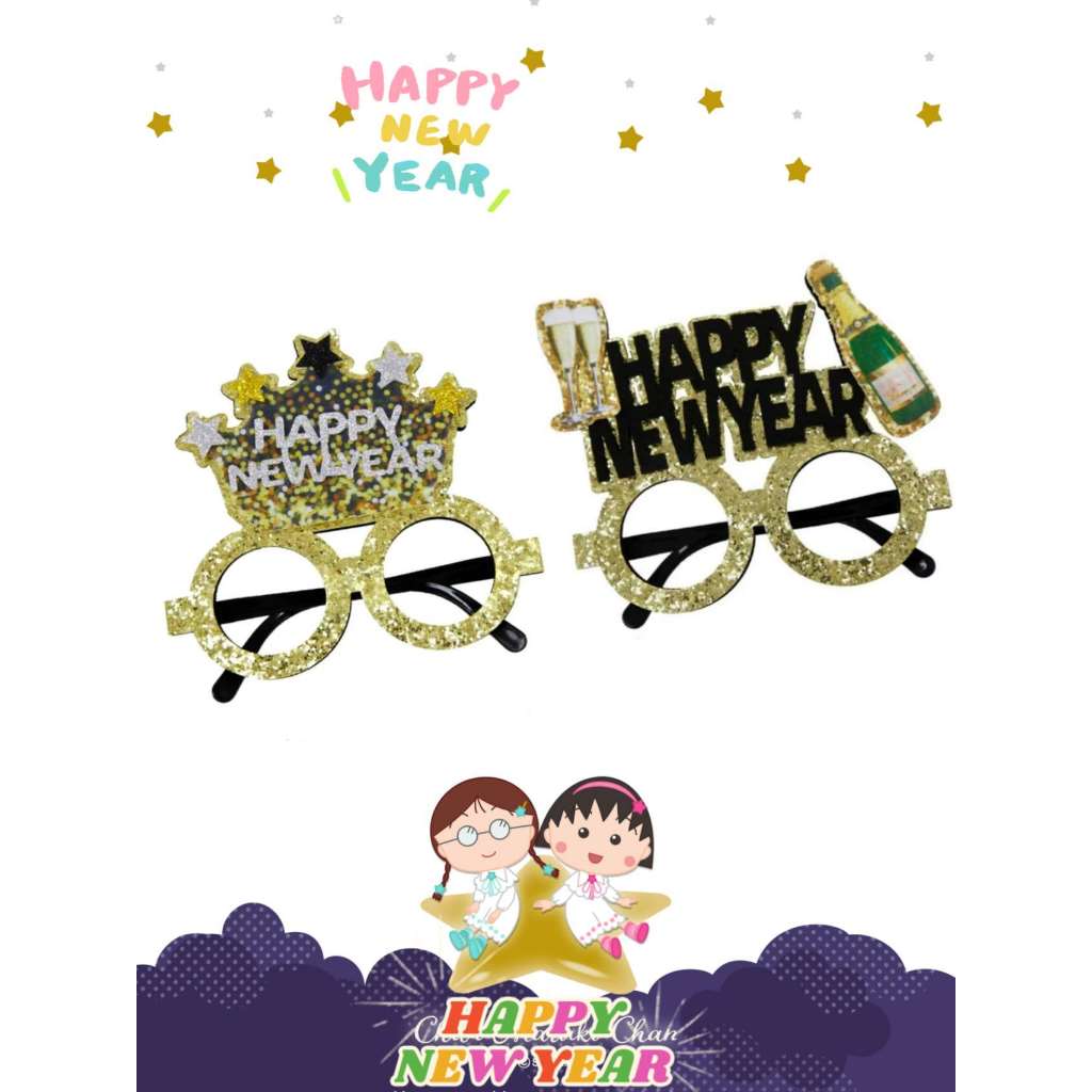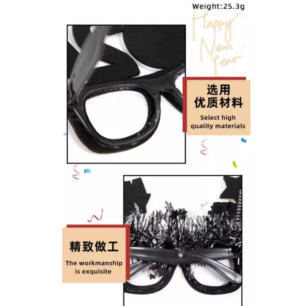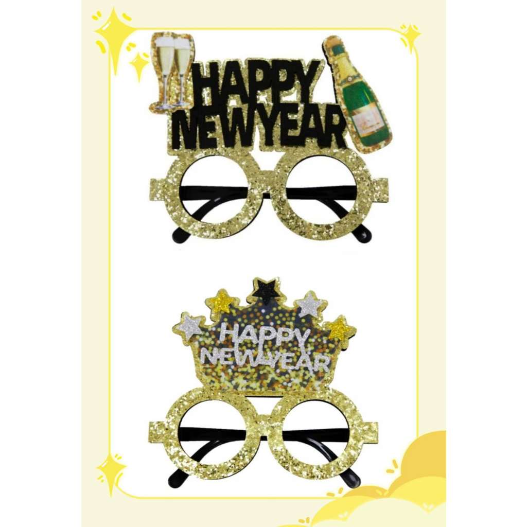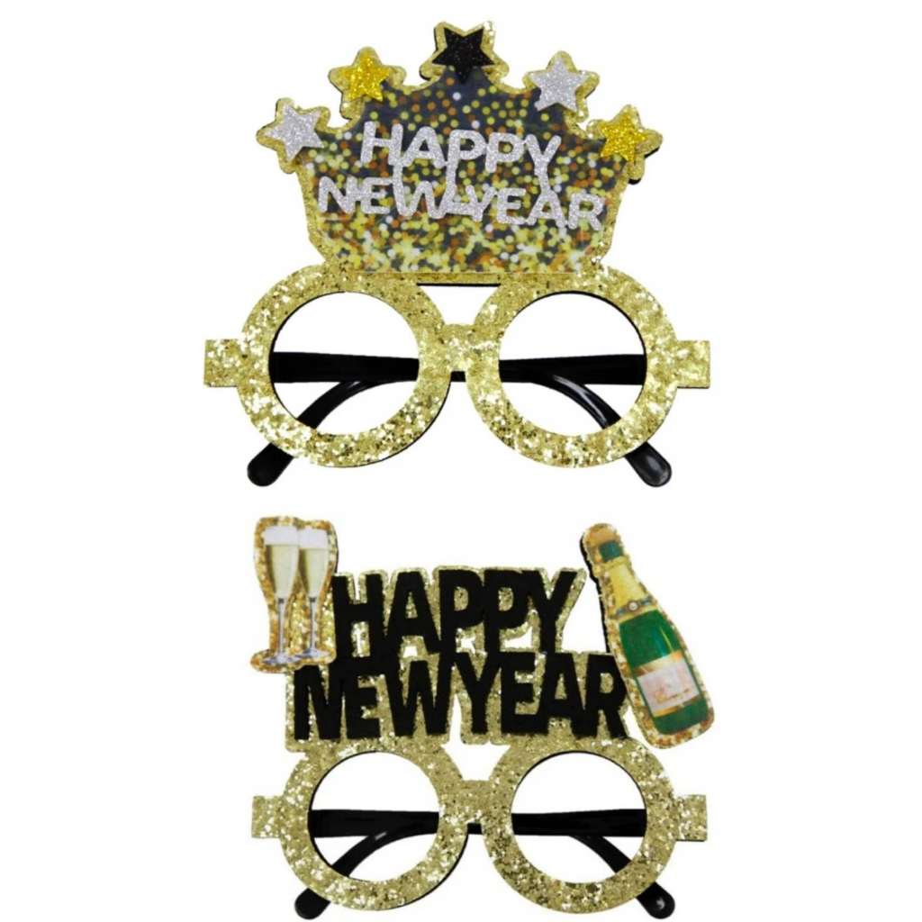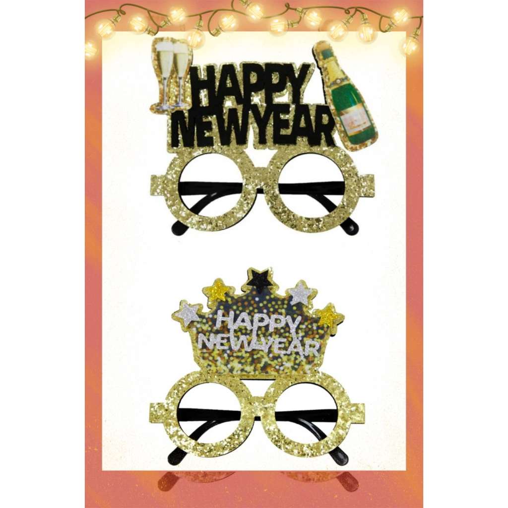 Happy New Year Eve 2025 Funny wacky glasses Glitter Crown Bottle glass party decorating photo props
