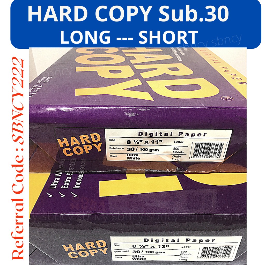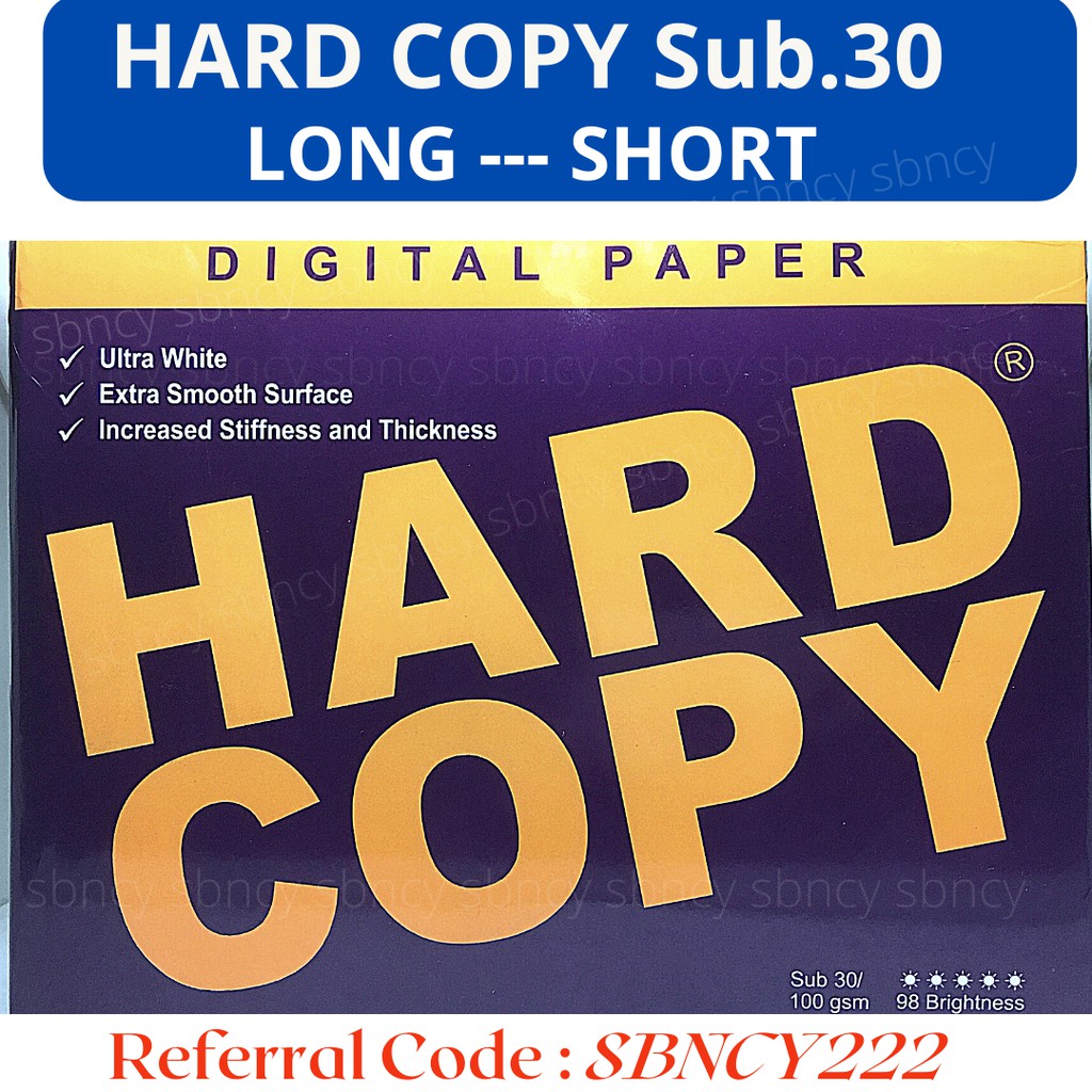 Hard Copy Substance 30 / 100GSM Long, Short & A4 Size HC Sub. 30 500pcs per ream