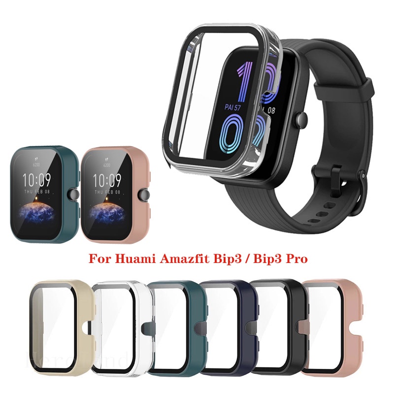 Hard PC Case Tempered Glass Screen Protector Protective Cover for Huami Amazfit Bip 3 Bip3 Pro Smart Watch