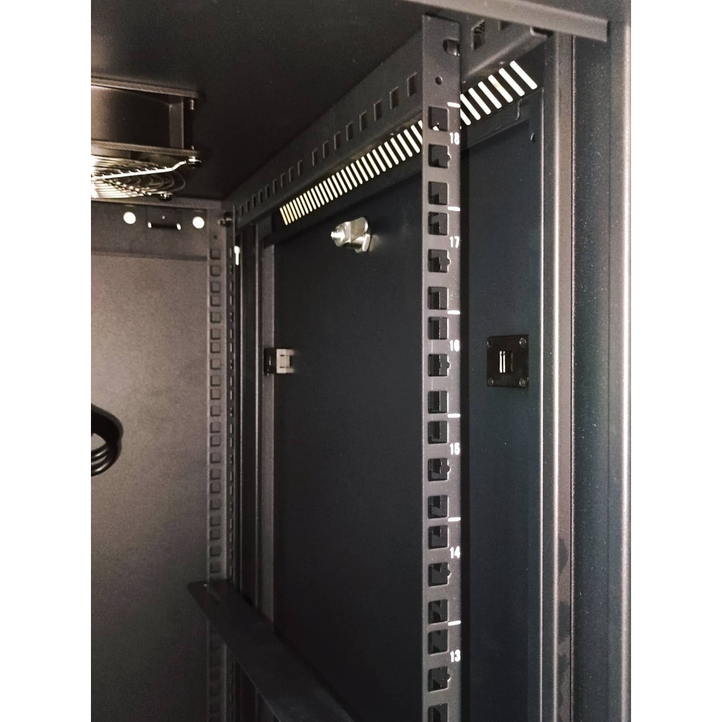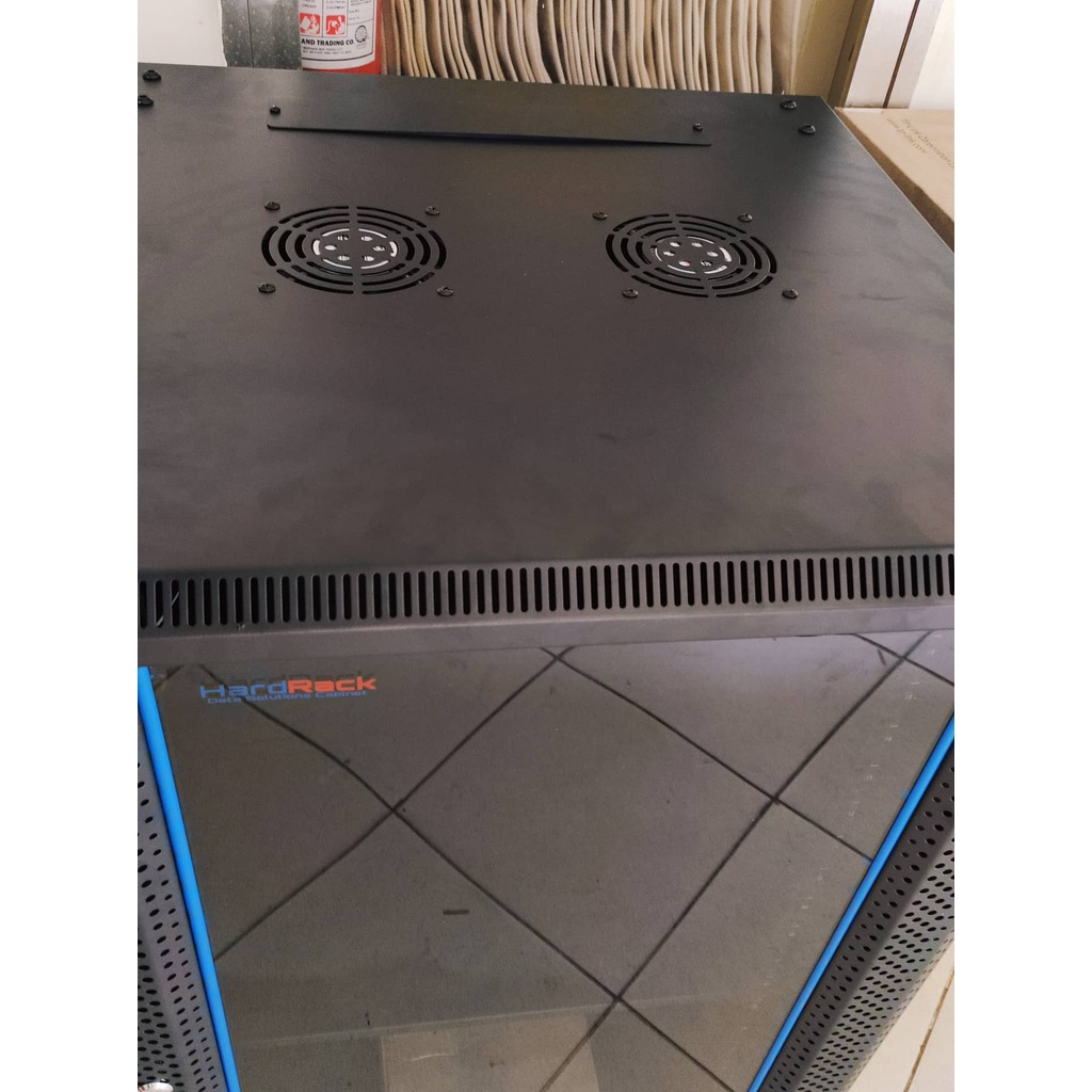 Hard Rack 18U 600x600x3FT Free Standing Data Cabinet With 2 Exhaust Fan, 1pc PDU 6-Slot and 1pc Tray