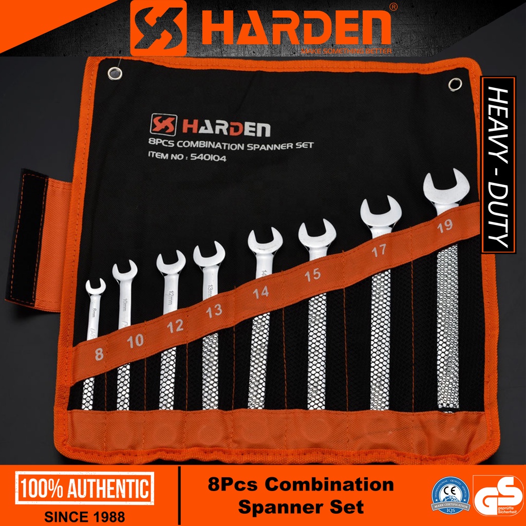 Harden 540104 8Pcs Combination Spanner Set (Professional) 8mm 19mm 8 Pcs Crv Hand Tool