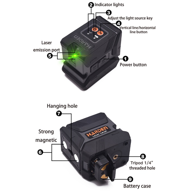 Harden 581002 Green Line Laser Level (Professional) Self-Leveling Cross Beam