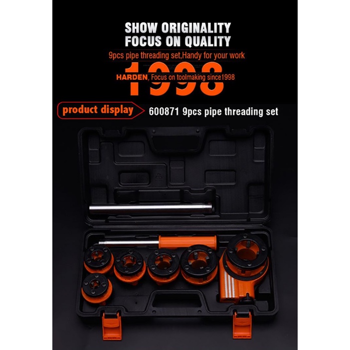 Harden 600871 9Pcs Pipe Threading Set (Professional) Manual Tool Handle Ratchet