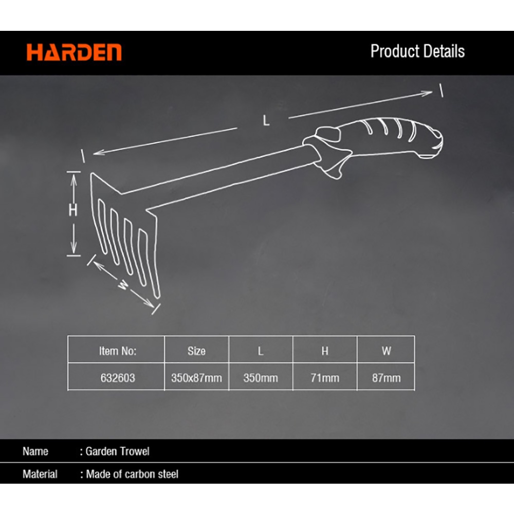 Harden 632603 35 X 8.7 Cm Garden Trowel (Professional) Carbon Steel Mini Hoe With Tpr Handle