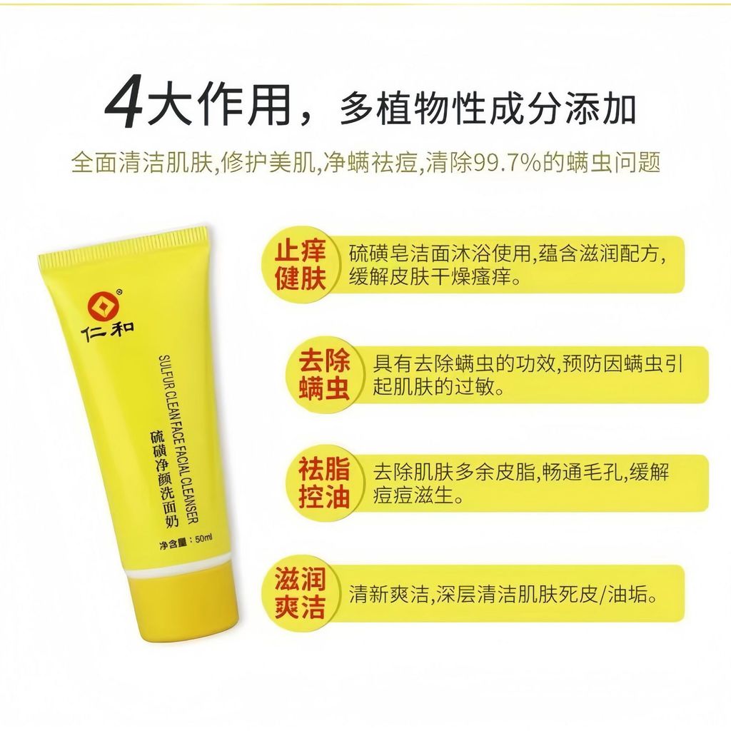 Renhe Sulfur Cleansing Facial Cleanser 50ml Deep Cleansing Oil Control Moisturizing D8BT