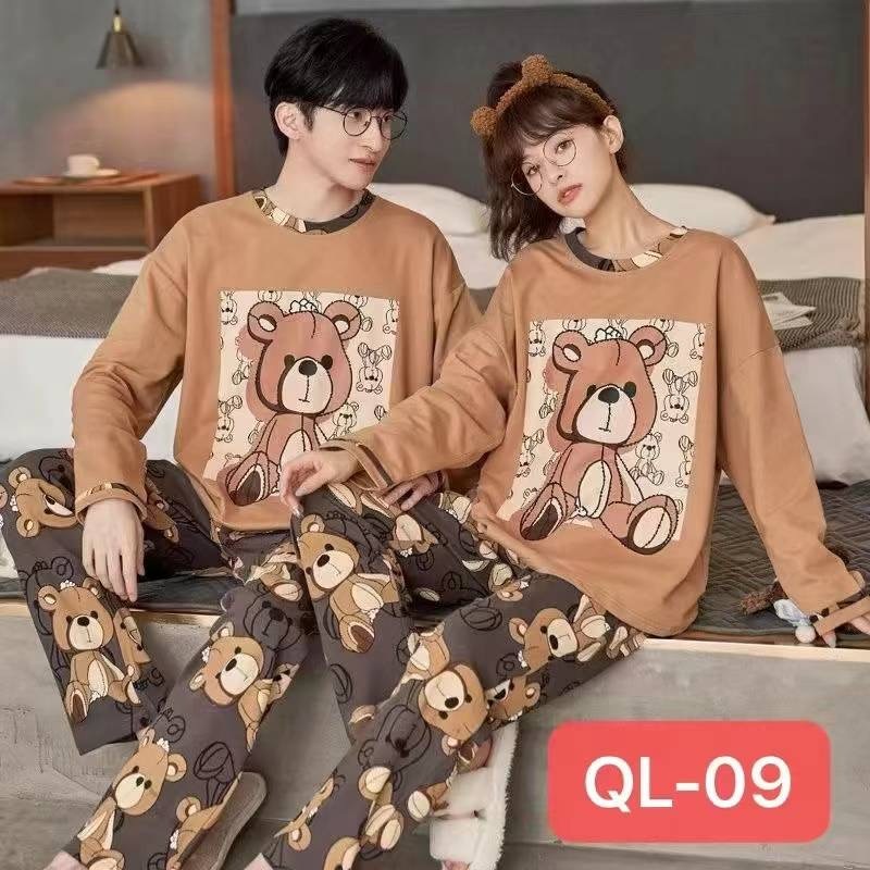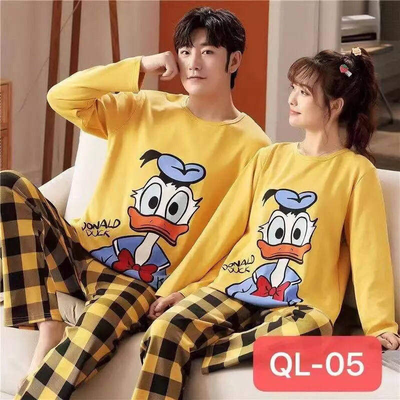 1 pair Long Sleeve Sleepwear Character Prints Assorted Adult long sleeved terno pajamas