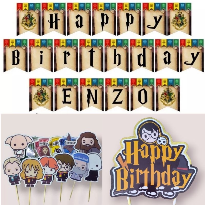 Harry Potter Hogwarts Theme Birthday Party Banner Cupcake Cake Topper Decoration Personalized
