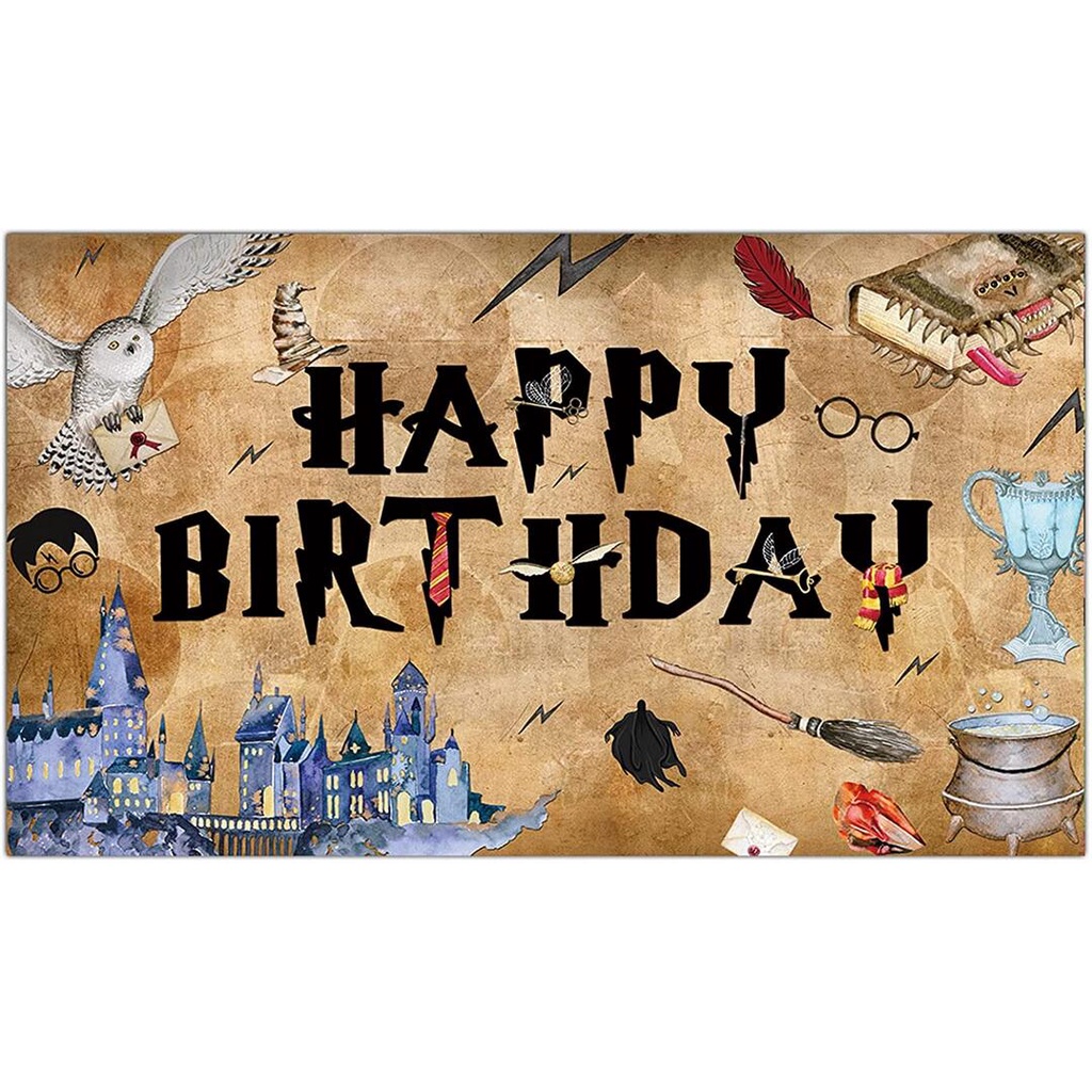 Harry Potter Magical Backdrop Magical Wizard Happy Birthday Banner Decoration Boys Girls Birthday Decoration Wizard School Birthday Decoration 150X100cm