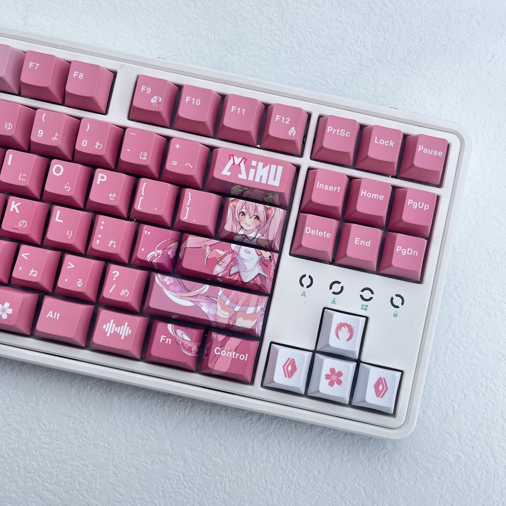 Hatsune Miku Keycaps Cherry Profile Pink Anime PBT Dye Sub Mechanical Keyboard Keycap Set