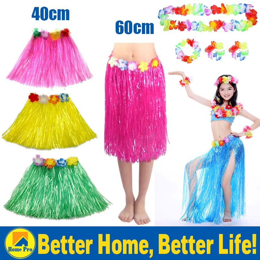 Hawaii Beach Grass Dress with Garland Hula Grass Skirt Tropical Summer Performance Dance Party
