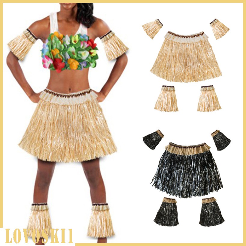 Hawaiian Grass Skirt Luau Party Halloween Event Costume Set