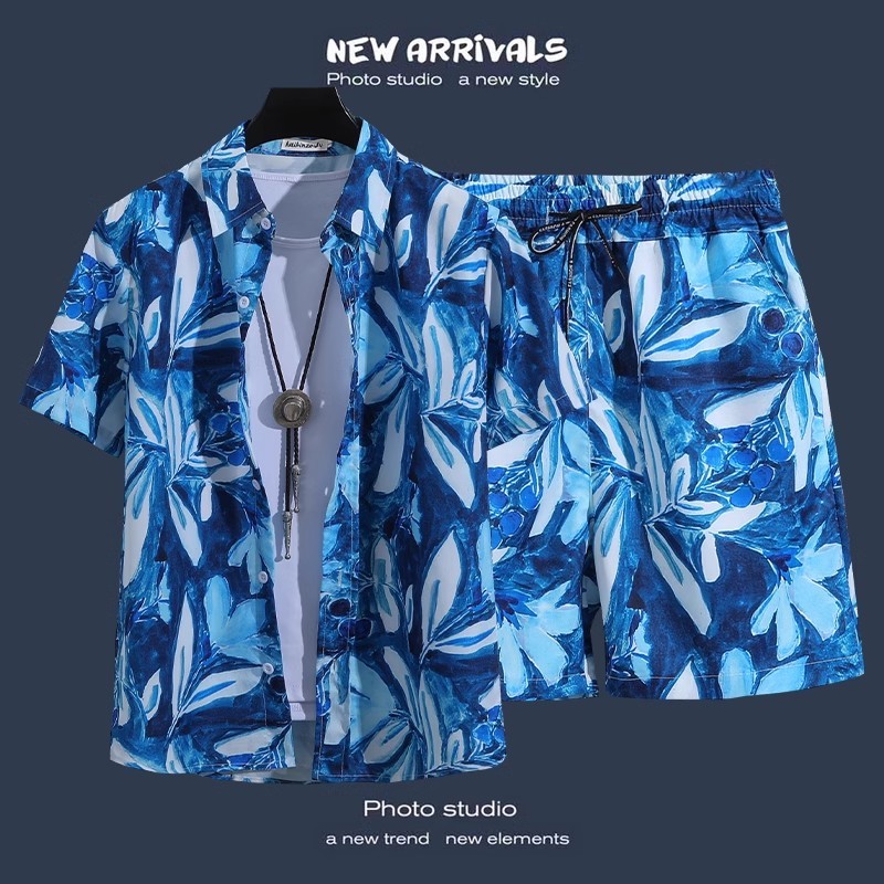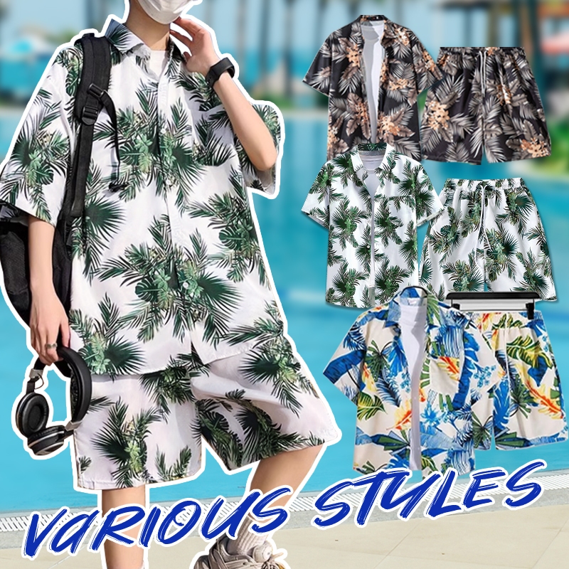 Hawaiian Terno for men Casual Breathable beach outfit set Loose floral Short terno unisex Tropical Suits boho