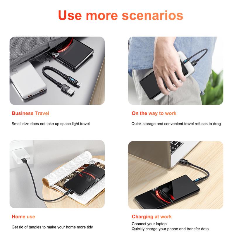 HdoorLink 25cm Short Quick Charge Cable Type C Mobile Phone Data Cables Micro USB Fast Charging Sync Cord USB Power Bank Adapter