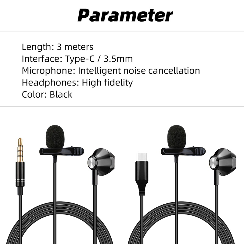 HdoorLink PC / Phone / Camera Mini USB Microphone Lapel Lavalier Mic Portable External Buttonhole 3.5mm Type-c Phone Live Microphones