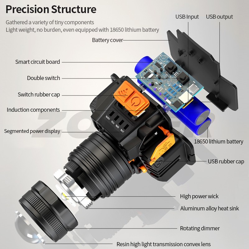 Headlamp Flashlight Led Headlamp Usb Rechargeable Water Proof Head Flashlight Multifunctional Xpe Cob Headlight Head Torch For Outdoor Camping Fishing