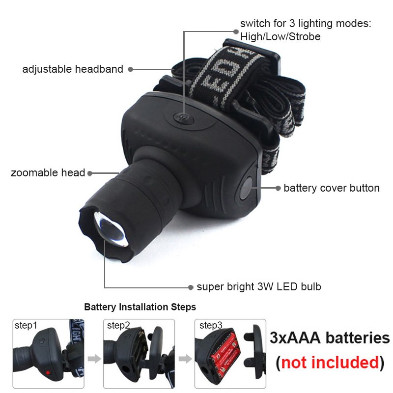 Headlamp Zoomable Head lamp LED head Flashlights 3 Modes Headlights Torch Flashlight Forehead(NOT including battery)