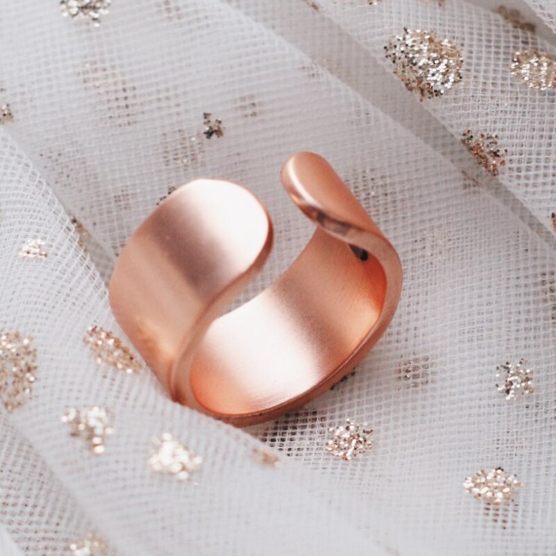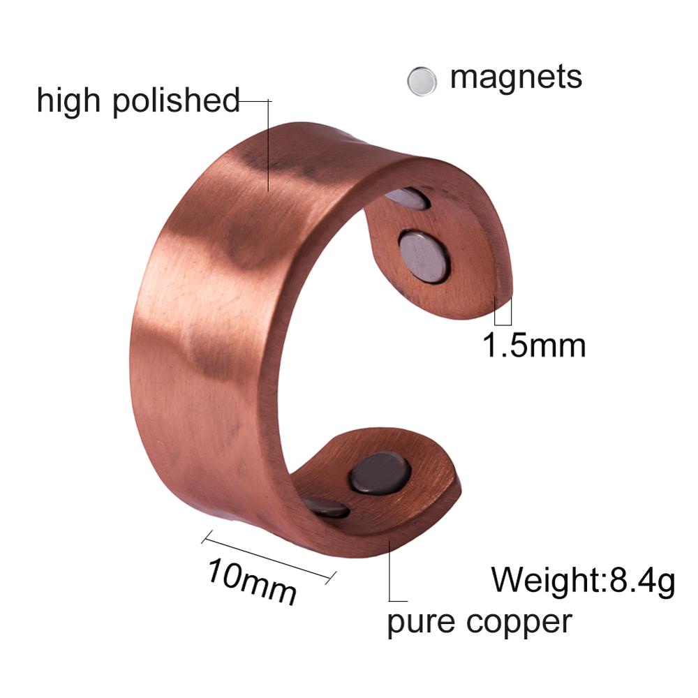 Health Energy Magnetic Pure Copper Ring Adjustable Open Cuff Metal Finger 9mm Arthritis Matte Finger Ring for Women Men Minimalist Jewelry