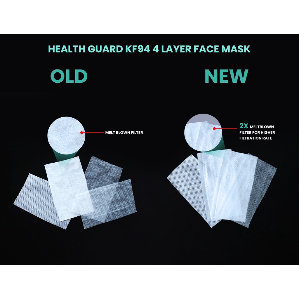 Health Guard KF94 4 Layer Face Mask Black, White, Pink, Rose Gold & Gray (Non-Medical/10pcs)