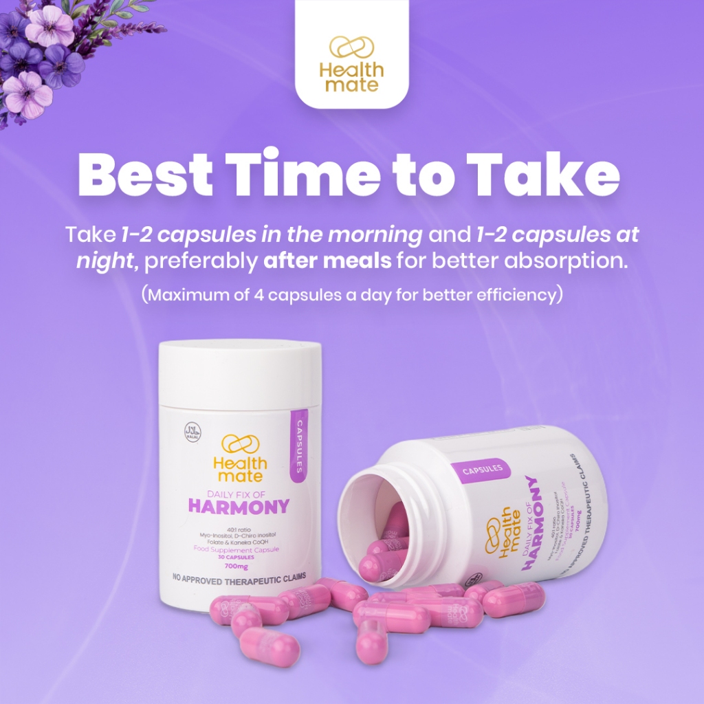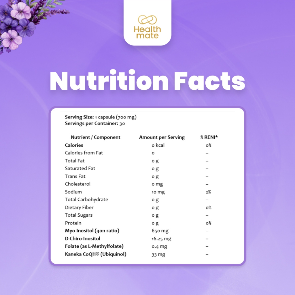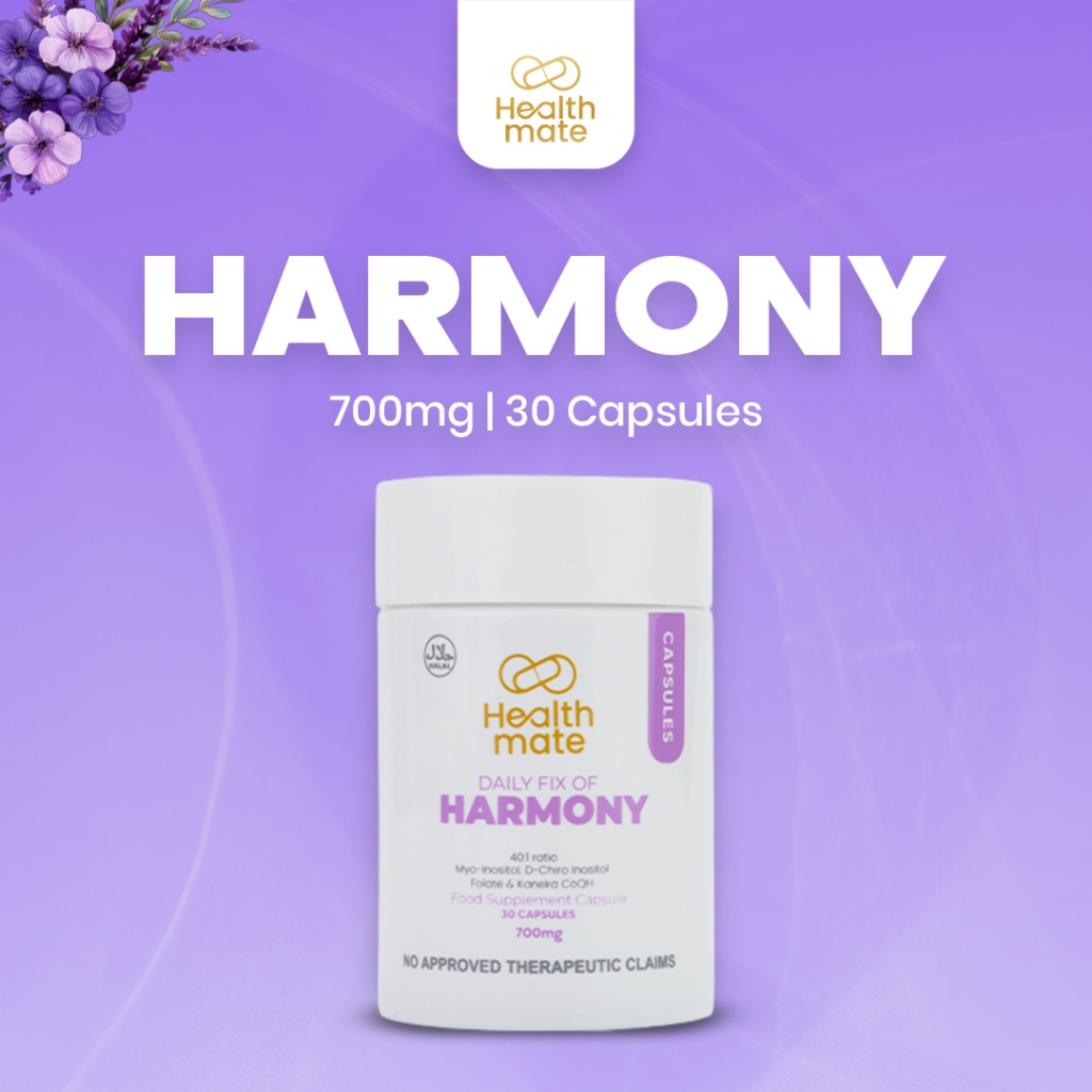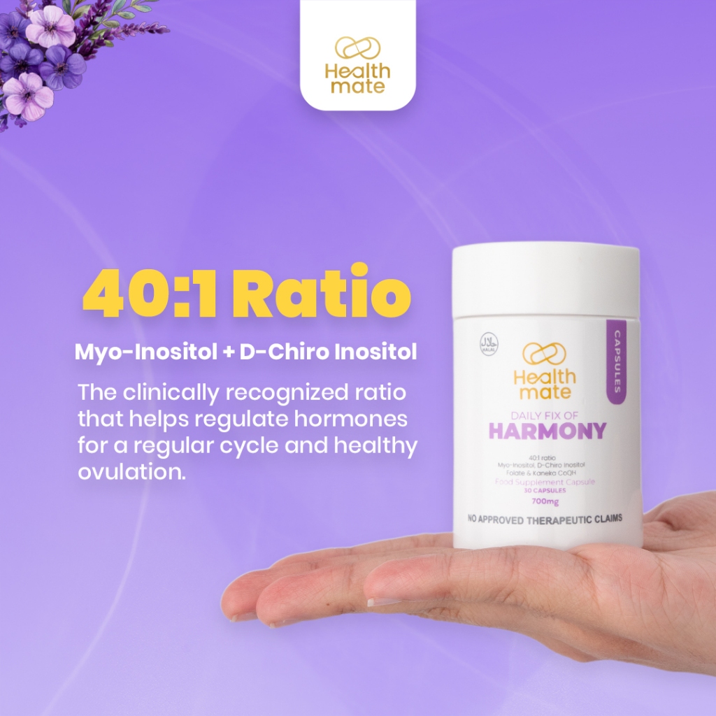Healthmate HARMONY 40:1 ratio Myo-Inositol, D-Chiro Inositol, Folate & Kaneka CoQH 30capsules 700mg