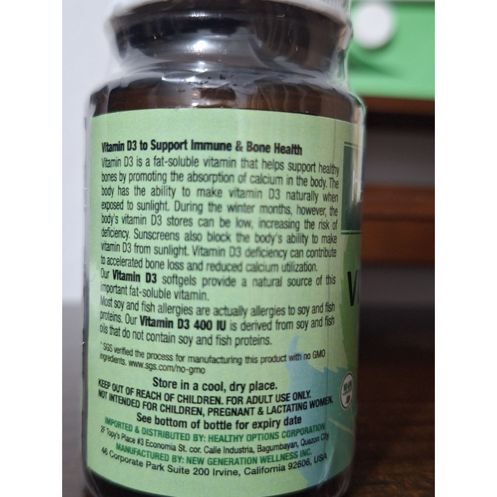 Healthy Options Vitamin D3 400 iu, 1000iu & 5000iu