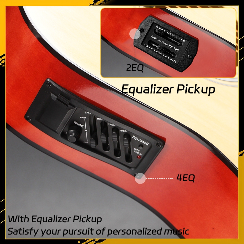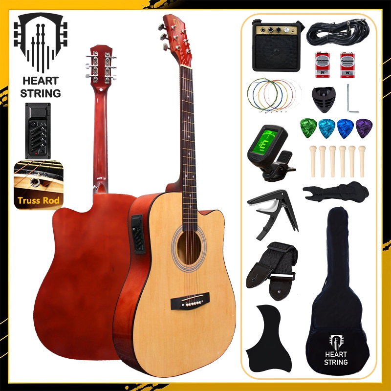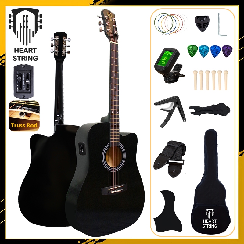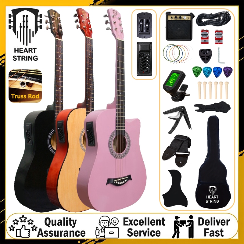 Heart String 38/41 Inches Acoustic Electric Guitar Set with Pickup Low Action Guitar with Truss Rod