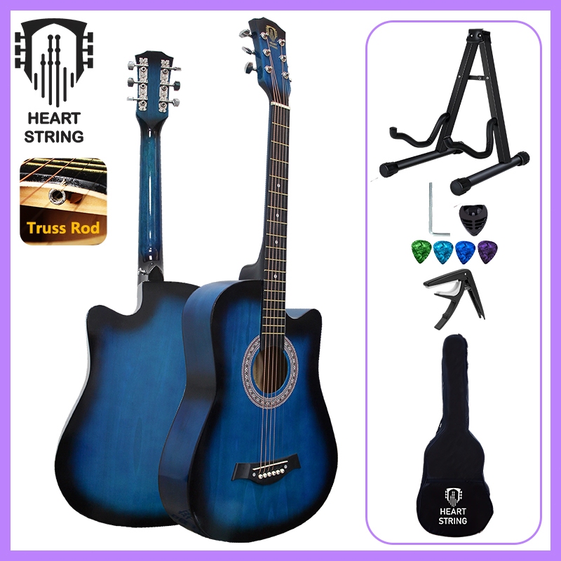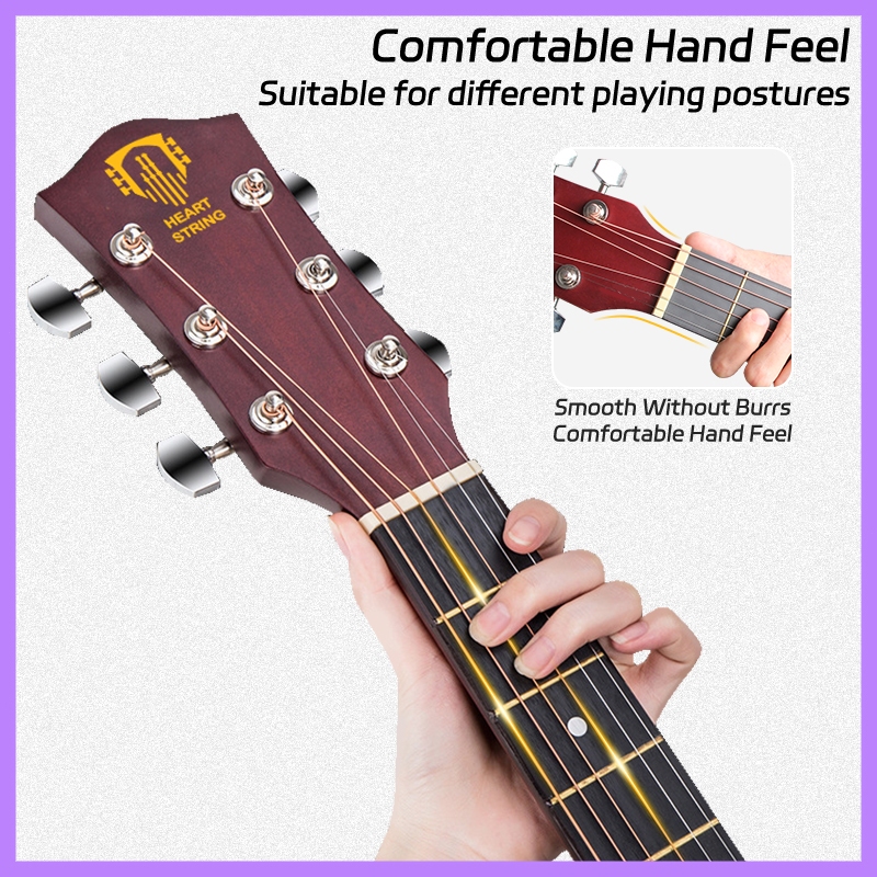 Heart String Acoustic Guitar Beginner Kids Adults Low Action Guitar Set with Truss Rod Guitar Stand