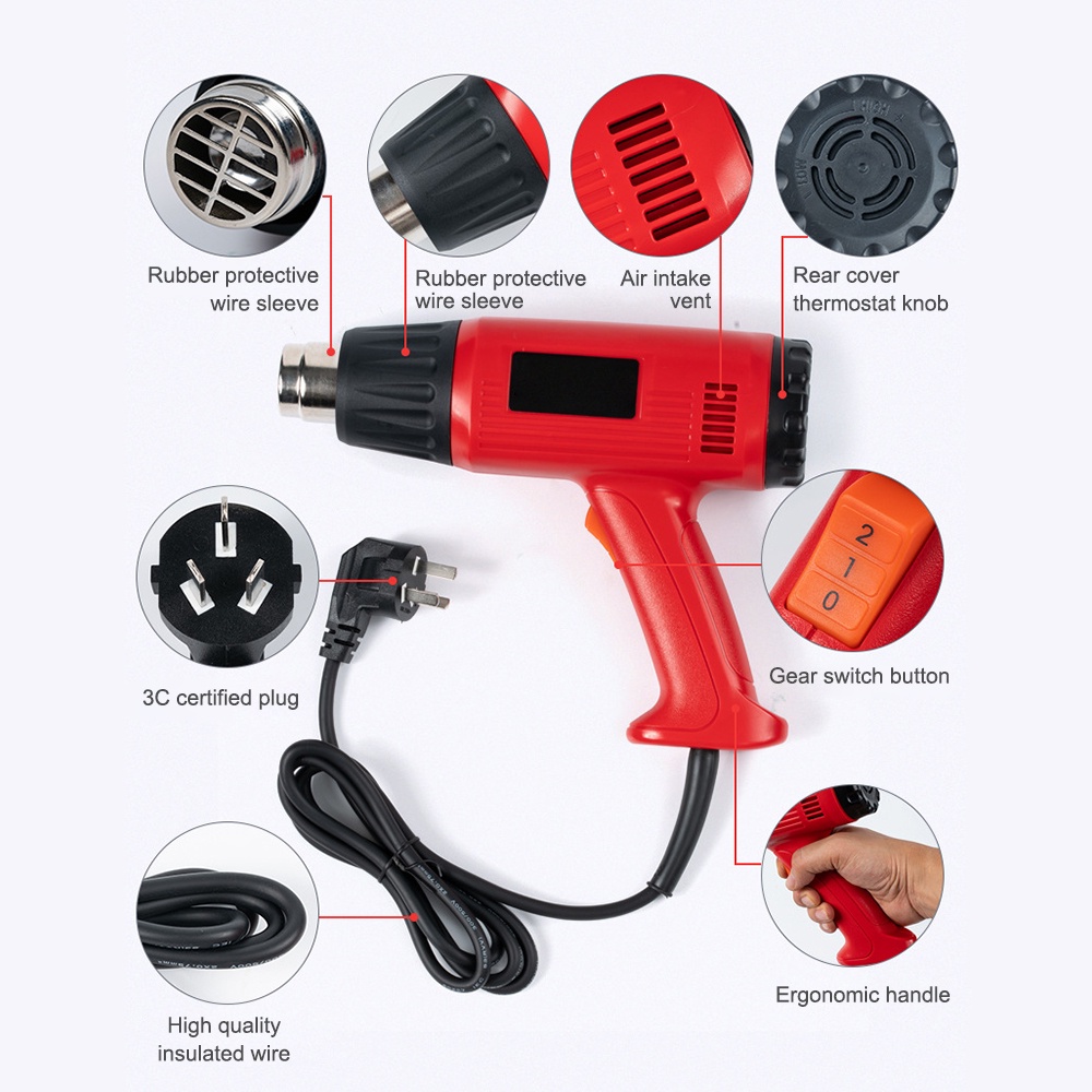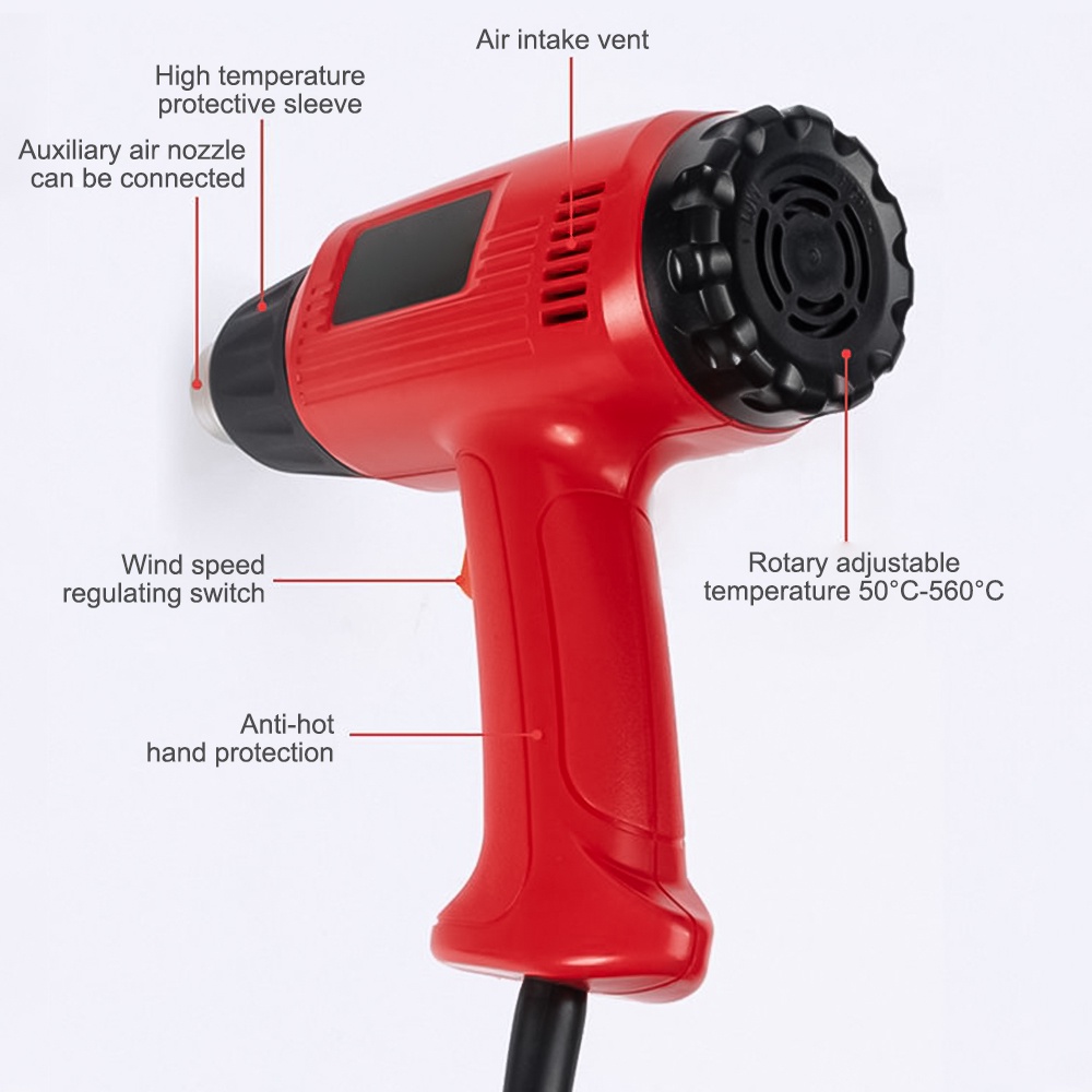 Heat Air Gun 2000W Remove Paint Varnish 4 Nozzles Electronic Temperature Control