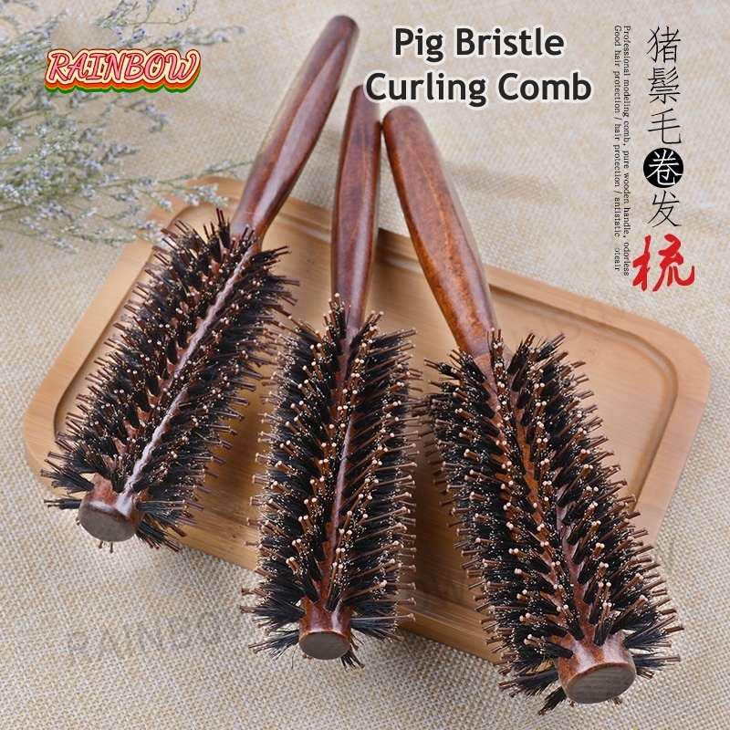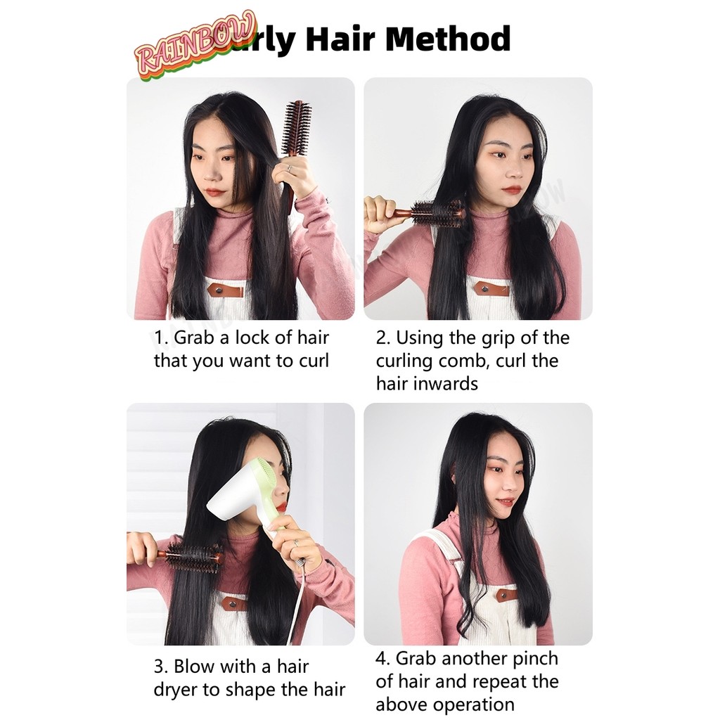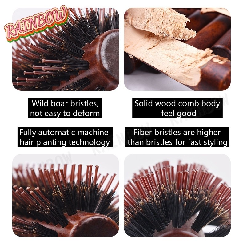 Heat Resistant Roller Brush Wooden Hair Comb Curling Hair Round Comb Salon Barber Hair Styling