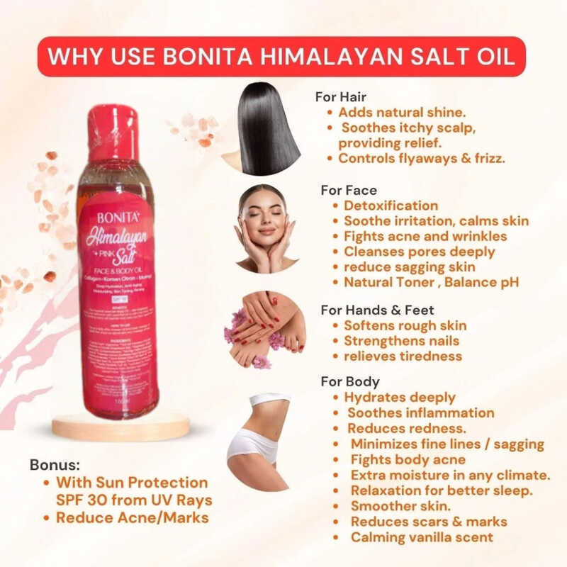 7C 8D 【My Girl】Bonita Himalayan Pink Salt Face & Body Oil Spf30 Collagen Korean