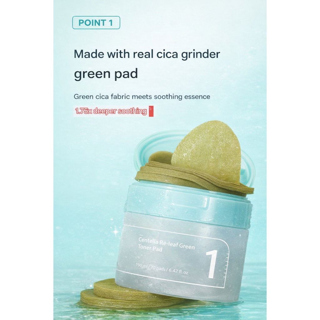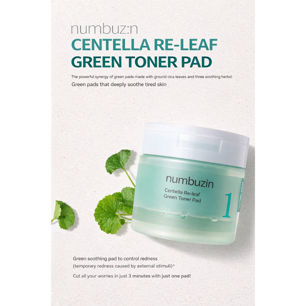 [numbuzin] No.1 Centella Re-leaf Green Toner Pad 70 Pads | Cica Soothing Calming Pad