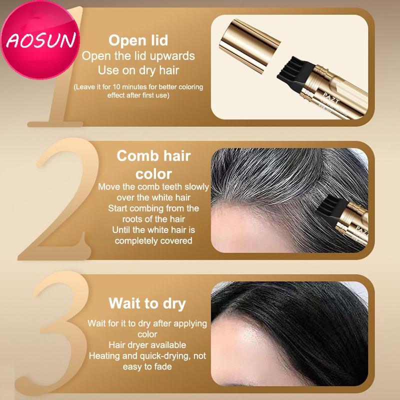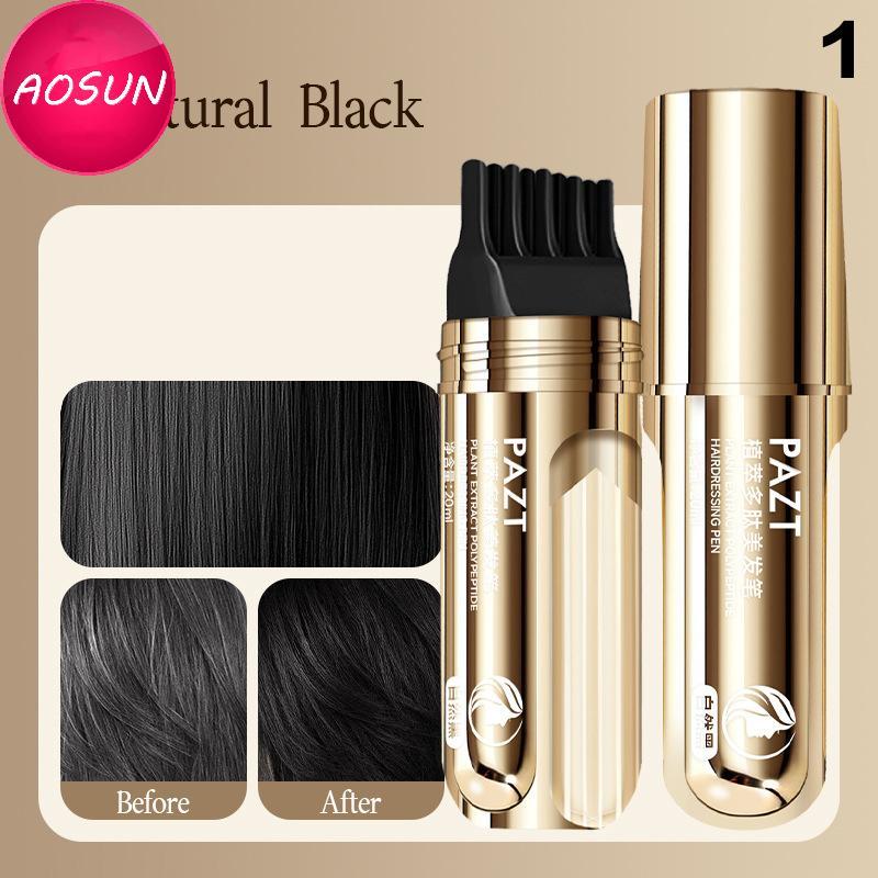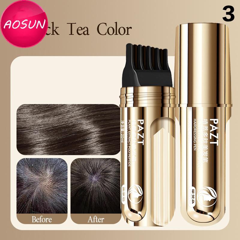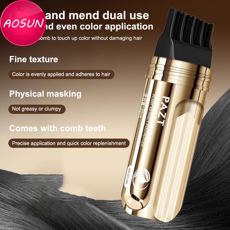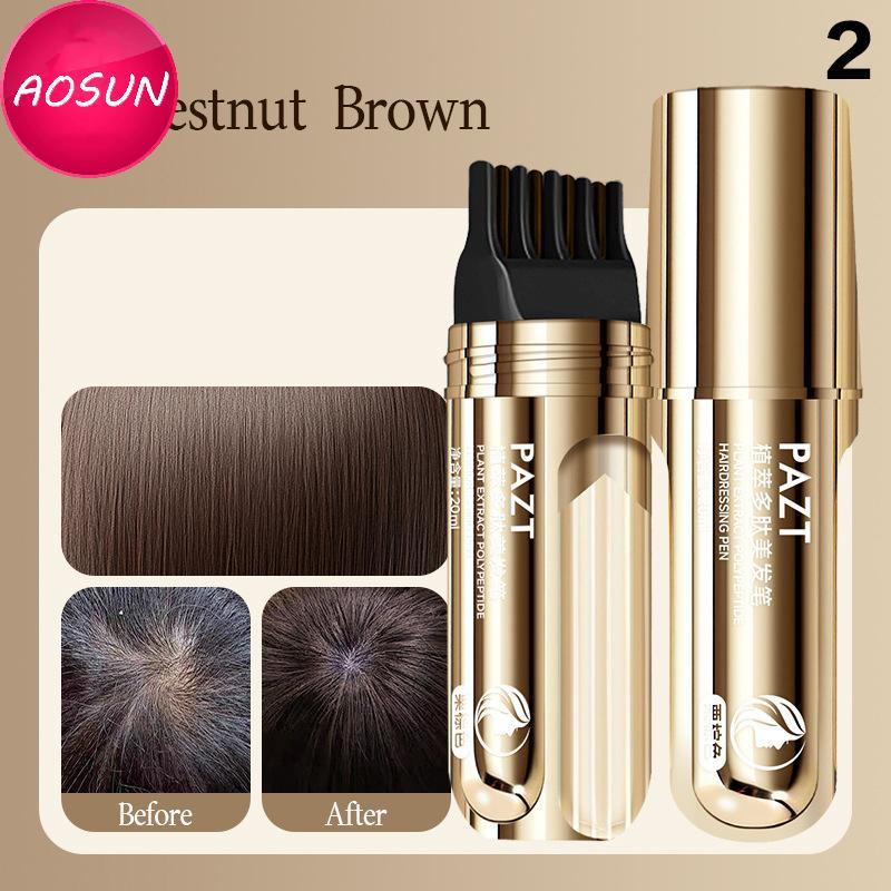 AOSUN 2 In 1 Plant Hair Dye Sti With Comb Bla Brown Long Lasting Temporary Hair Coloring Cover White Hairs Hairline Pen Washable PH