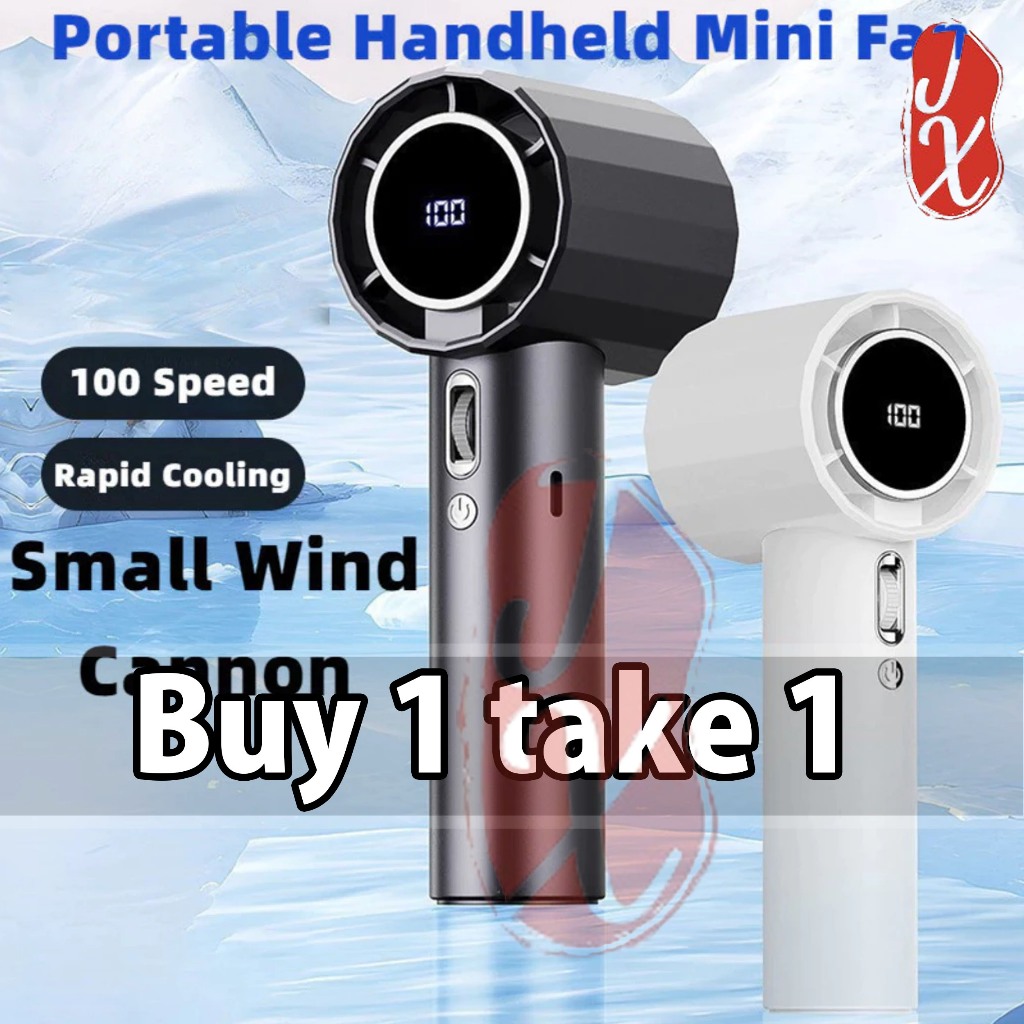 【Buy 1 Take 1】GS5 100 level high-speed handheld fan TYPE C charging digital display mini violent sma