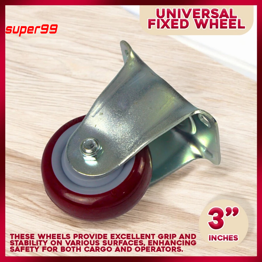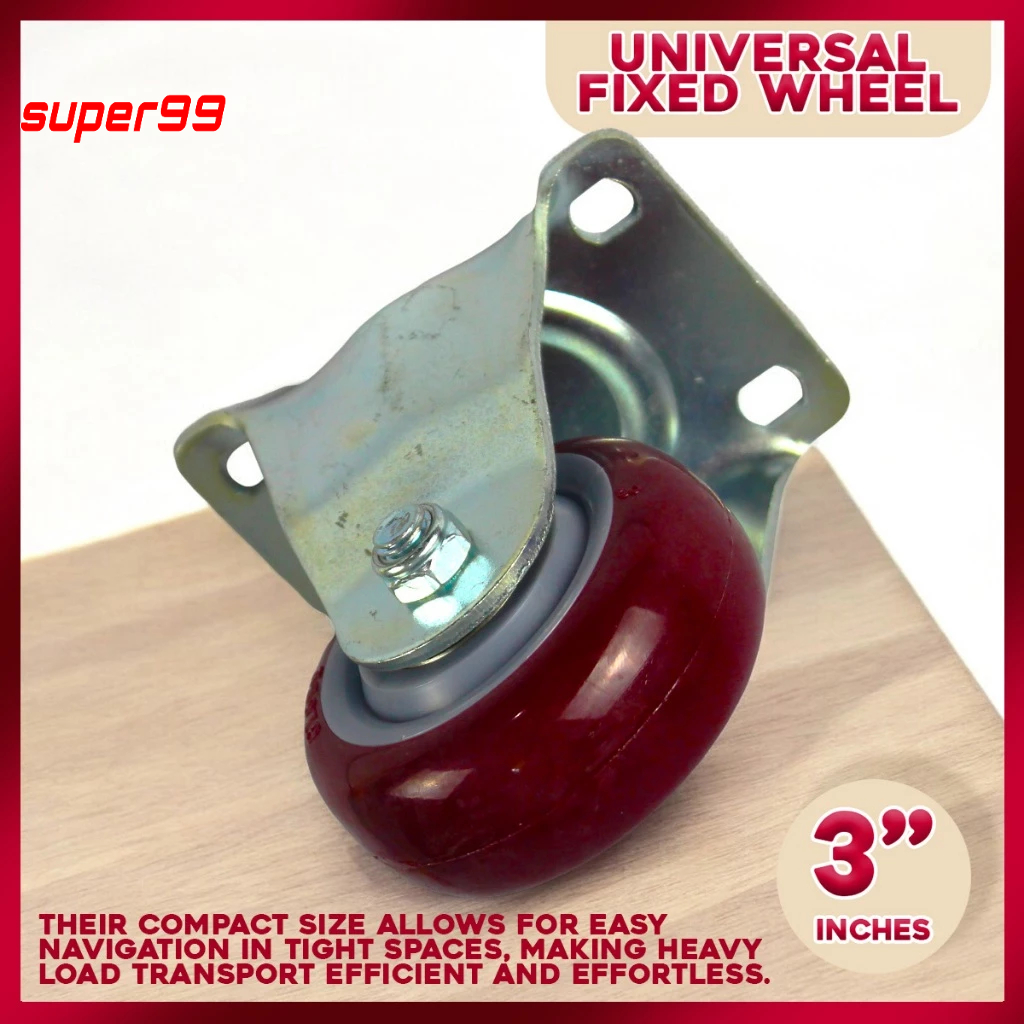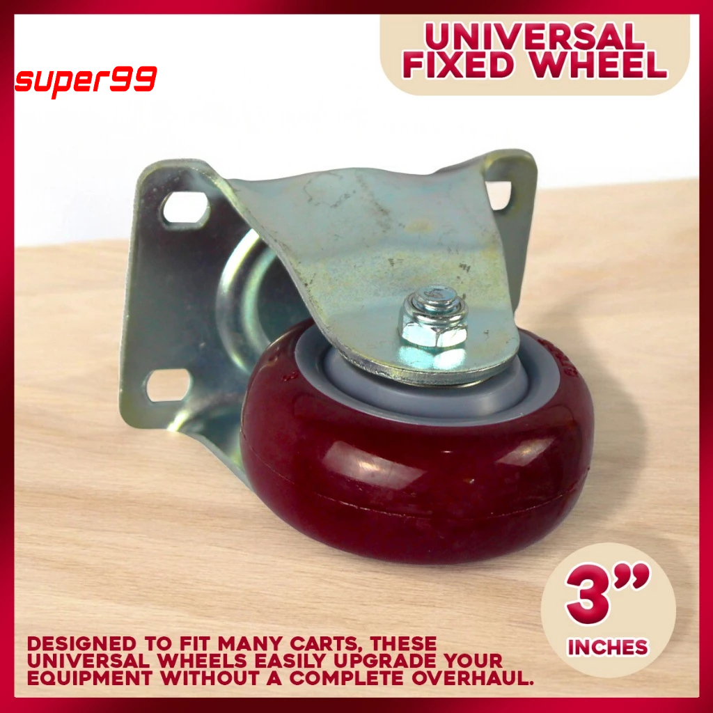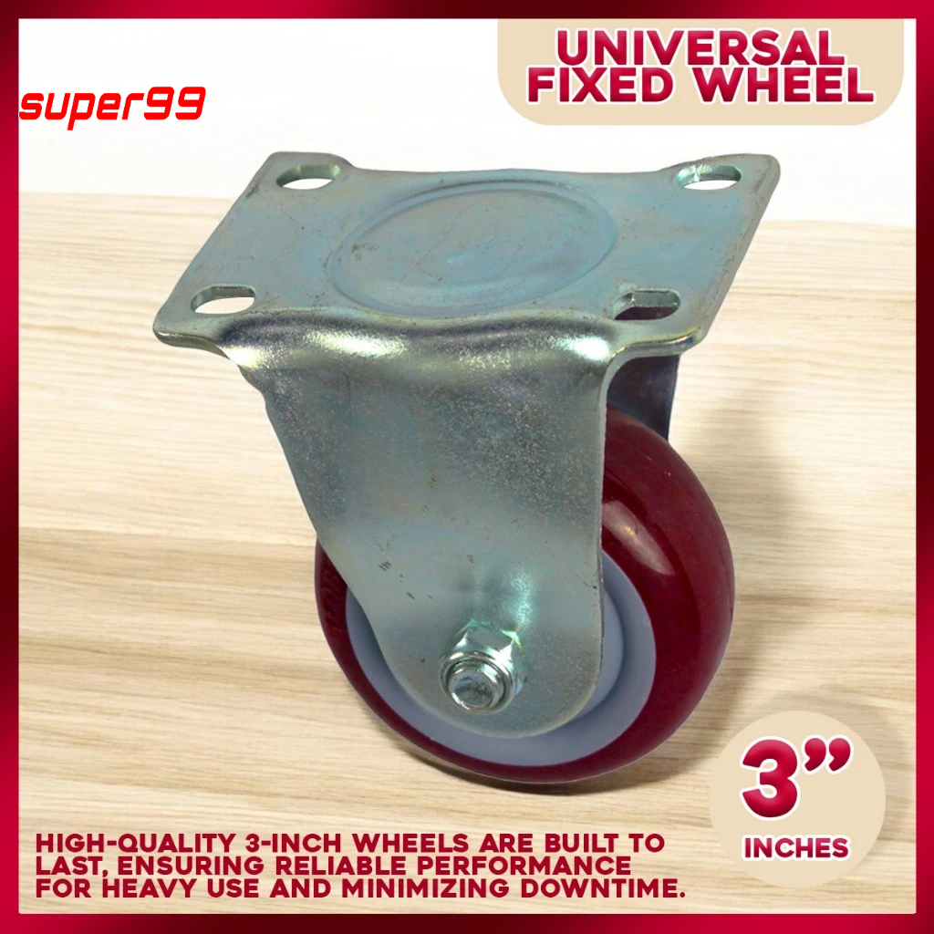 Heavy-Duty 3-Inch Fixed Red Polyurethane Wheels - Strong and Long-Lasting