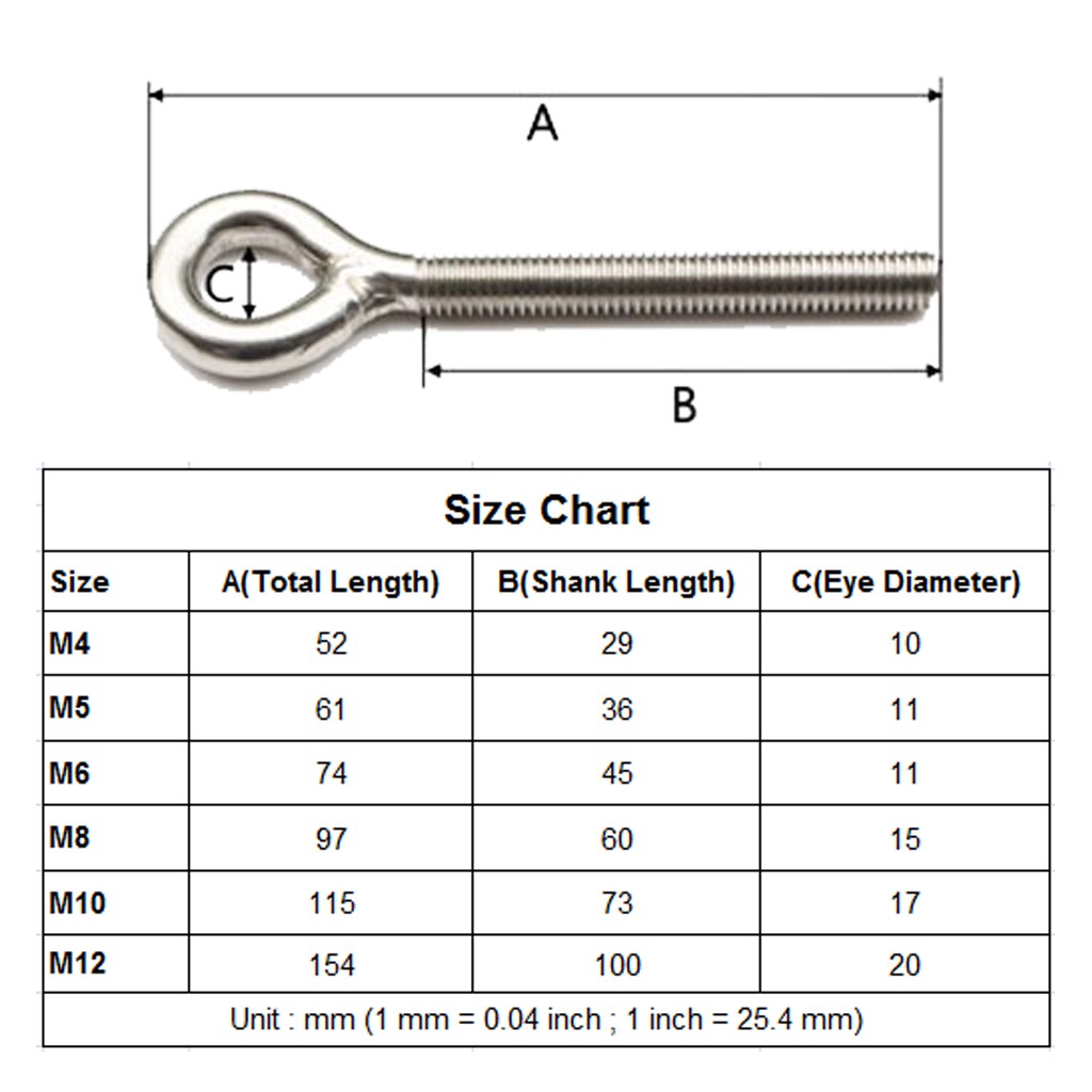 Heavy Duty 304 Stainless Steel Eyebolt Welded Eye Bolt Metric Thread M4-