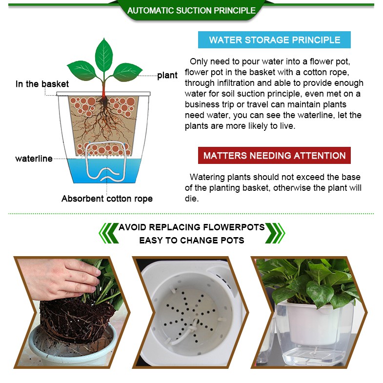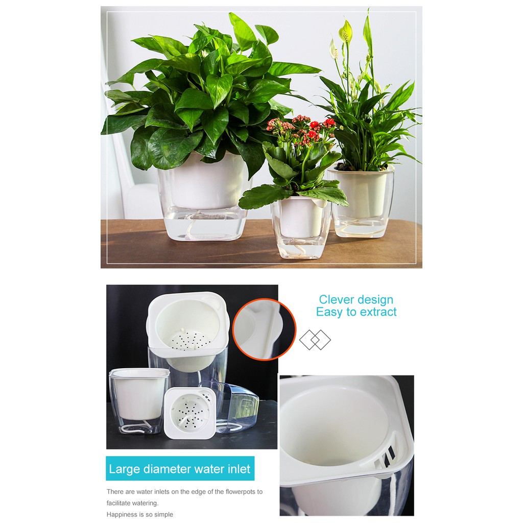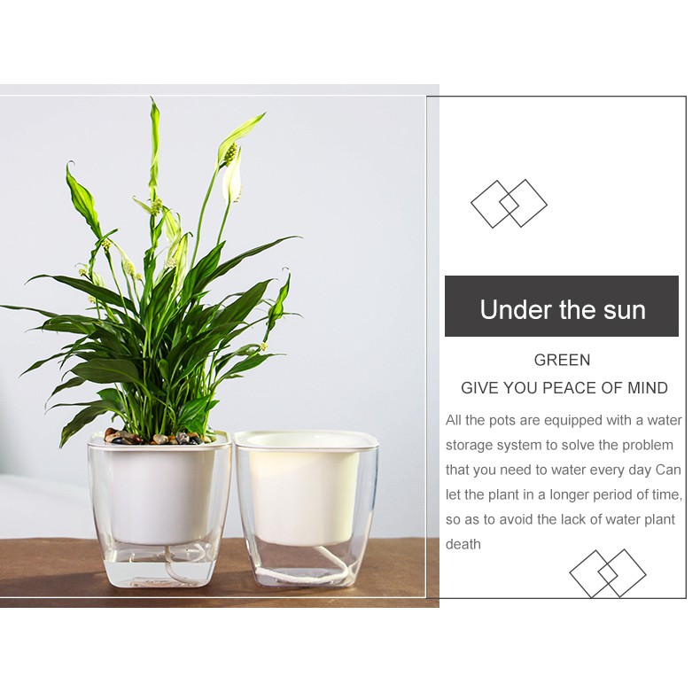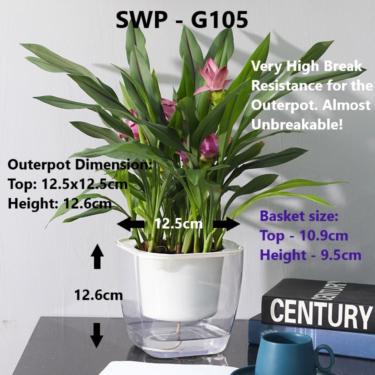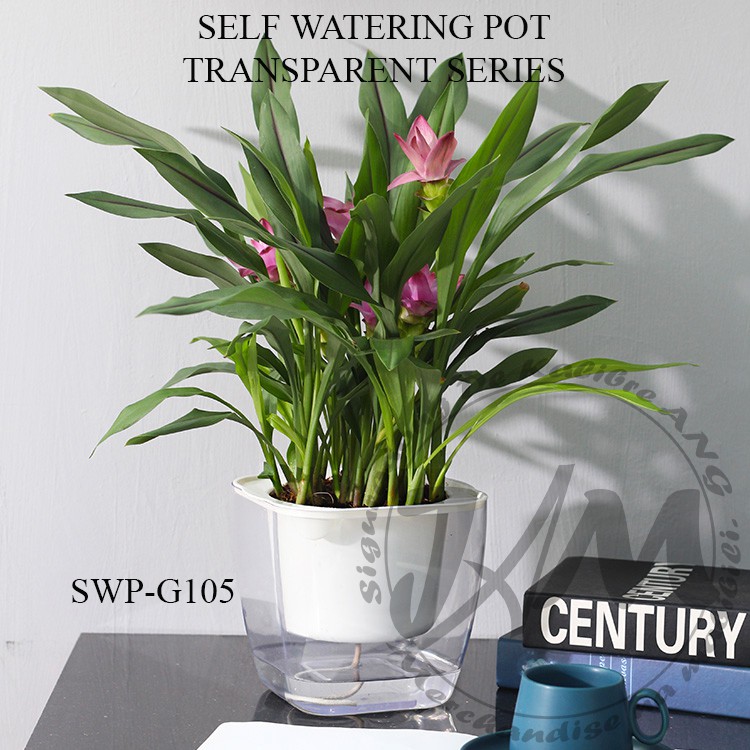 Heavy Duty ABS Biodegradable Plastic Transparent White Self Watering Pot, High Break and Heat Resist
