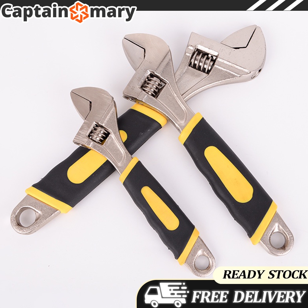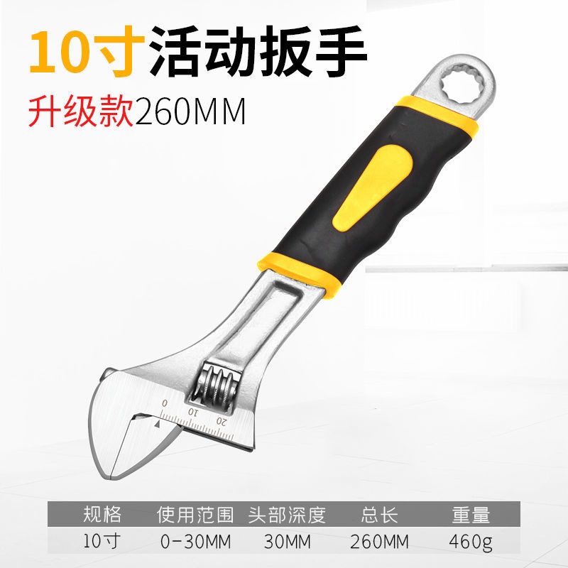 Heavy Duty Adjustable Wrench 6-10 Inch With Rubberized Handle And Box End