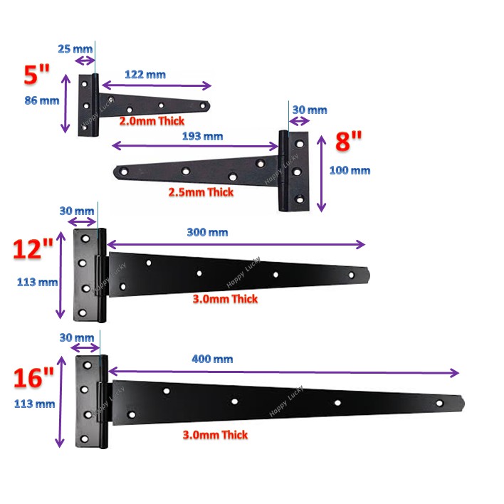 Heavy Duty Black Tee Hinges 1PC T Hinges Ensel T Hitam Antique Castor Door Gate
