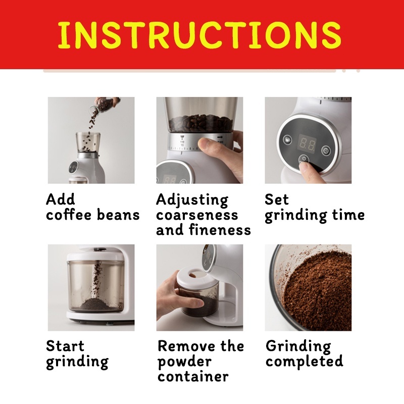 Heavy Duty Coffee Grinder Adjustable Coarse Powder Timing Function Grinder
