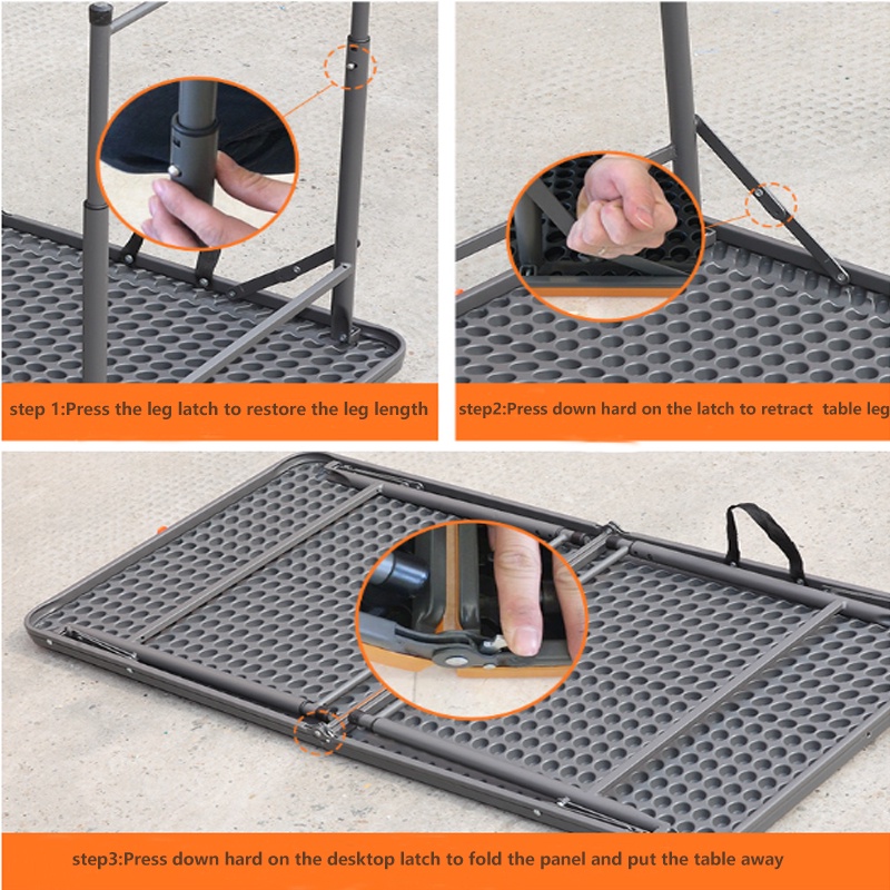 Heavy Duty Folding Folding Table 4 FT/Fold-in-half Table Brown Steel Residential Foldable Table