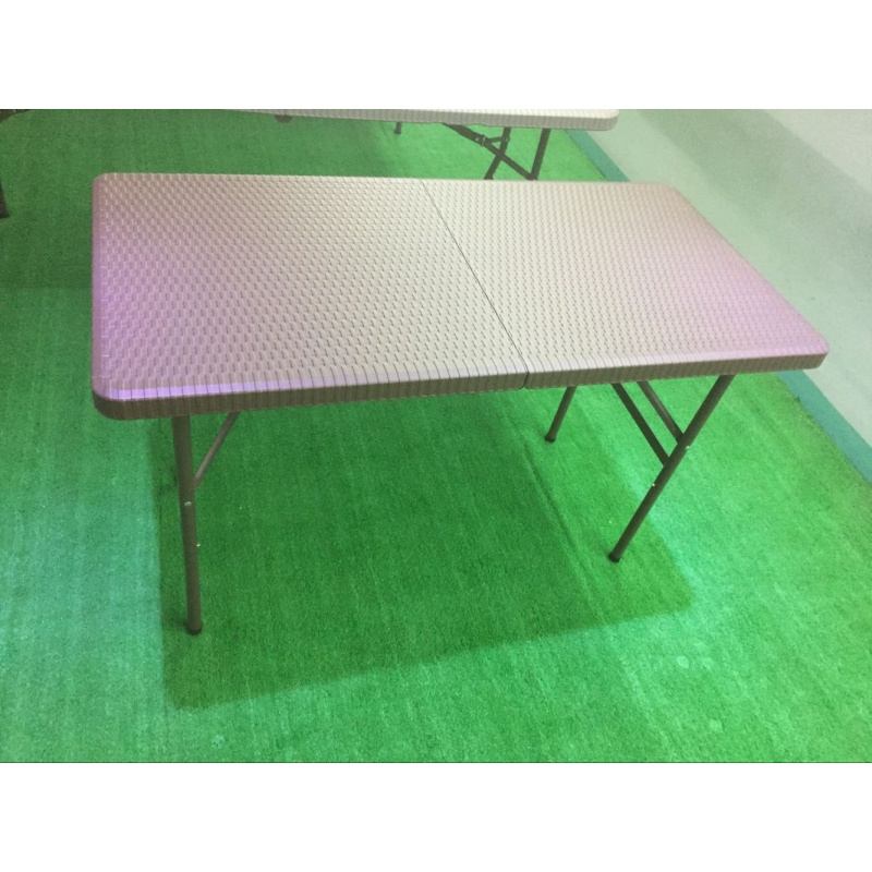 Heavy Duty Folding Folding Table 4 Ft/fold-In-Half Table White/Brown Steel Residential Folding Table