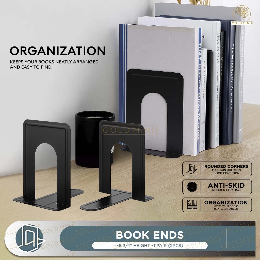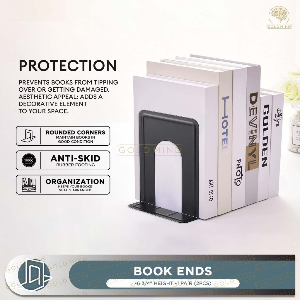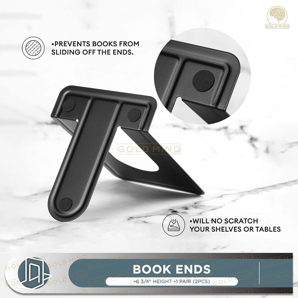Heavy Duty Metal Bookends 6 3/4" Height 1 Pair (2pcs) Bookend, Book End Stand