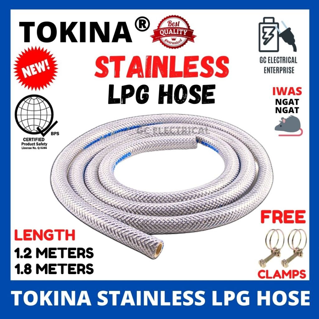 Heavy Duty STAINLESS LPG Gas Stove Hose Gas Hose Rubber w/ 2 FREE Clamps LPG Hose