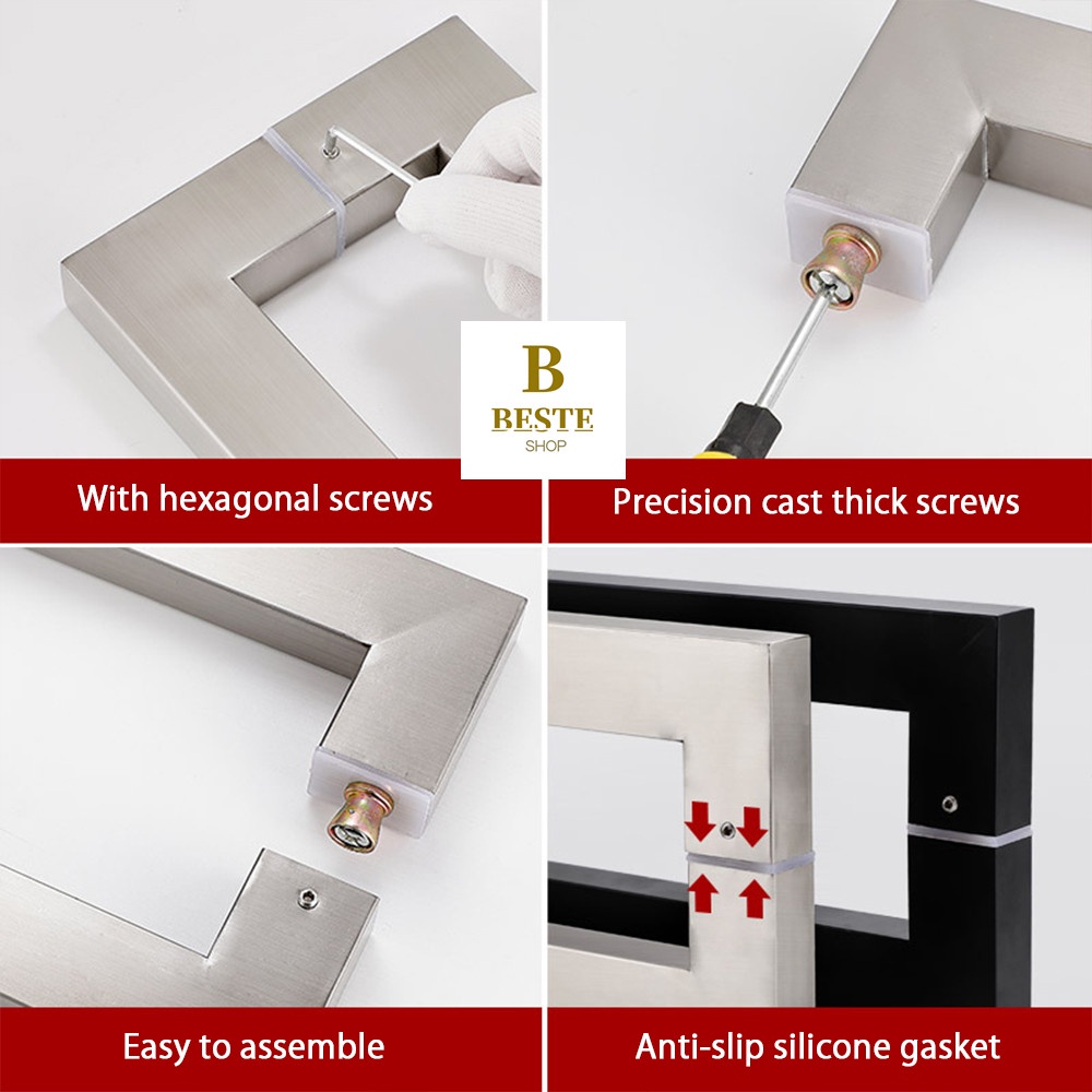 Heavy Duty Stainless Steel Push Pull Door Handle Square Tube Handle Wood Door Handle