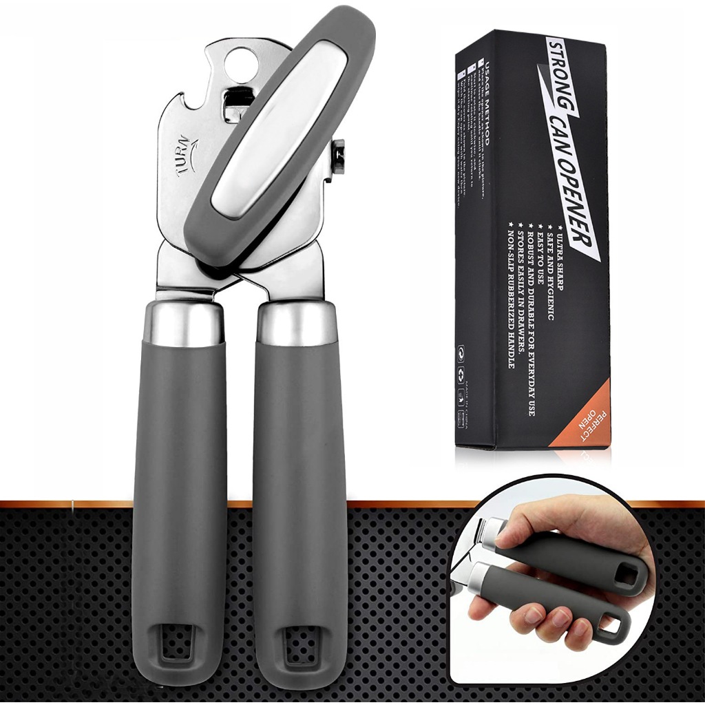 Heavy Duty Stainless Steel Smooth Edge Manual Hand Held Can Opener With Soft Touch Handle, Rust Proof Oversized Handheld Easy Turn Knob, Large Lid Openers