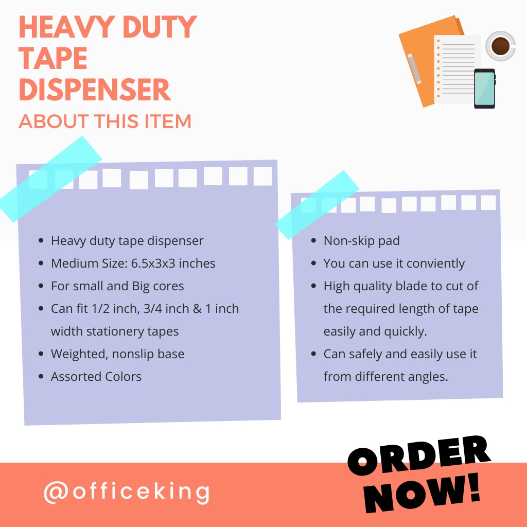 Heavy Duty Tape Dispenser Large Dual Core (fits 1inch & 3inch core)