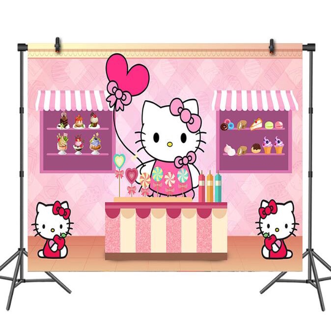 Hello Kitty Backgdrop Kids Birthday Party Theme Banner Photography Background 125*80cm