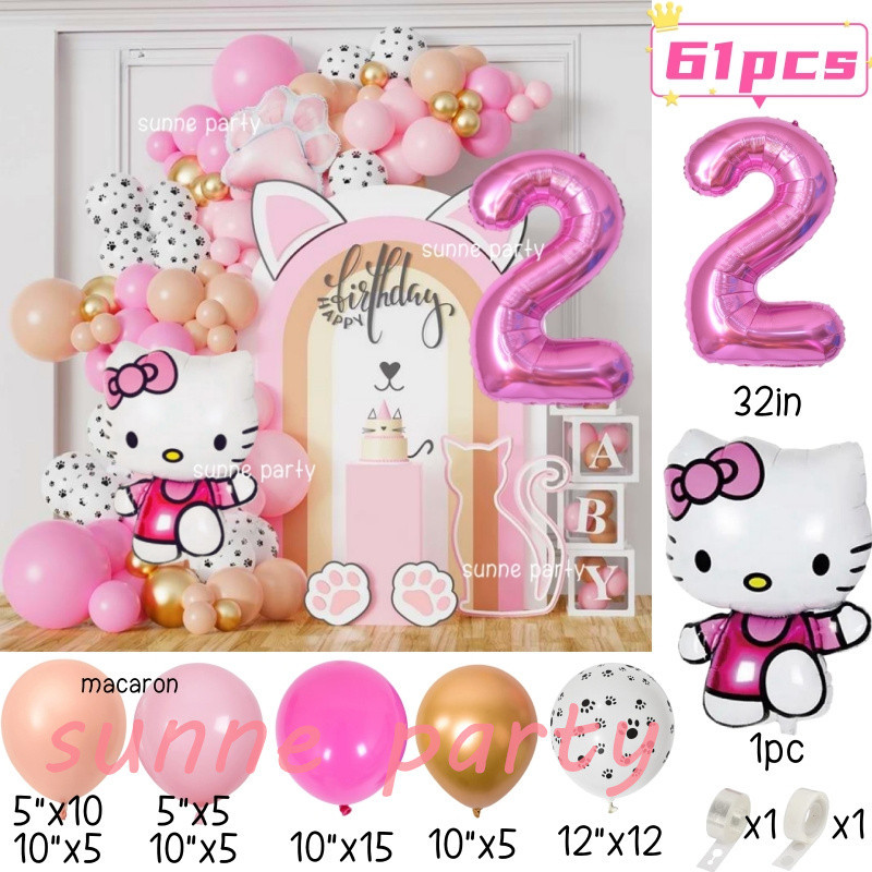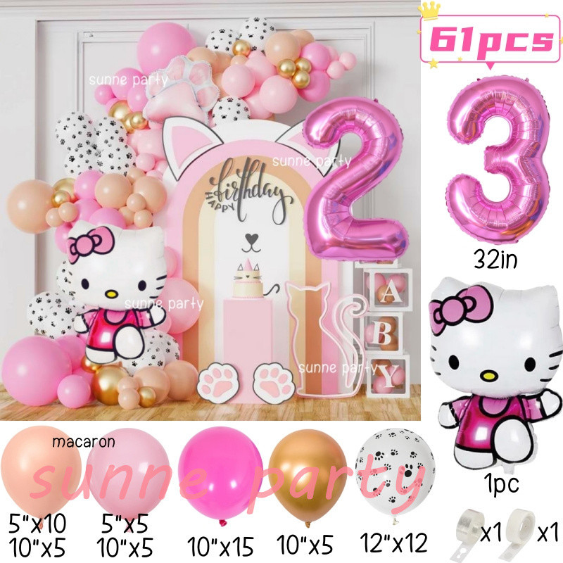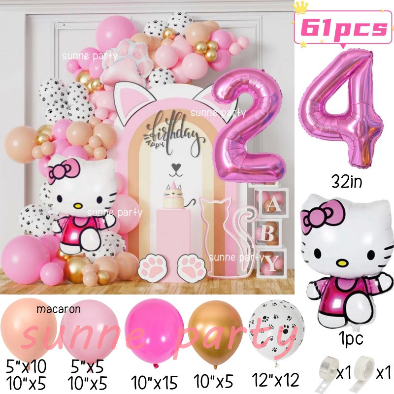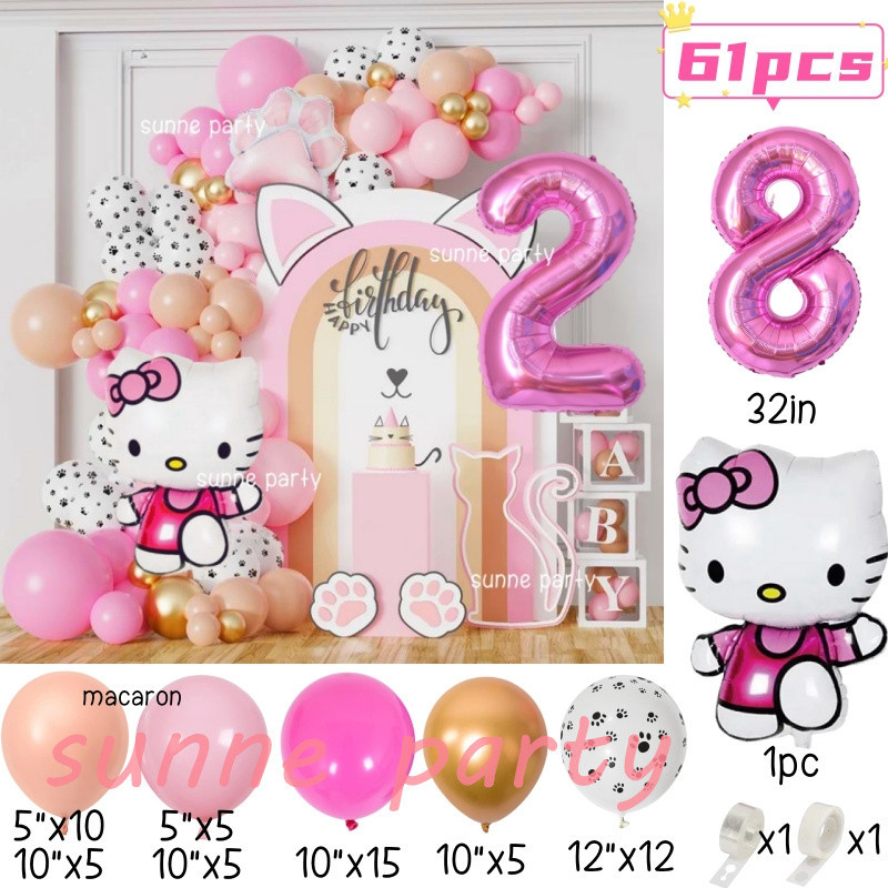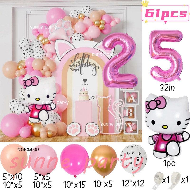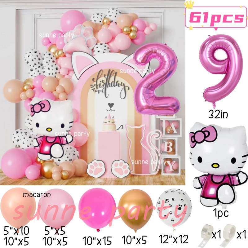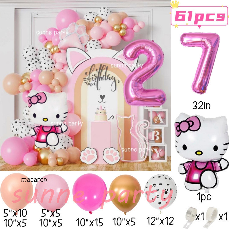 Hello Kitty Balloons Garland Arch Kit 32inch Pink Number Foil Balloon Pink Kitty Cat for 0-9th Girl Birthday Party Needs