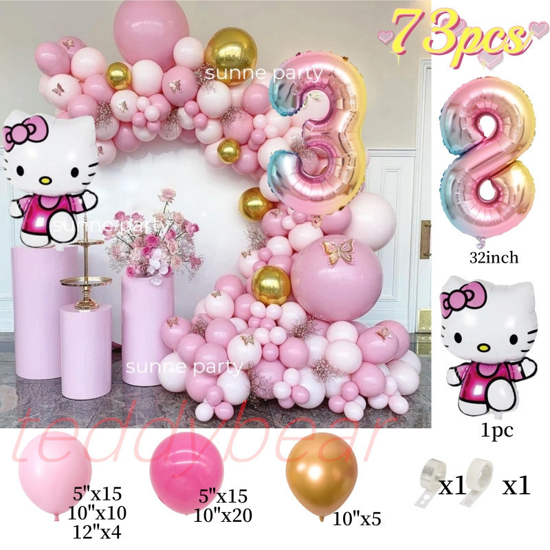 Hello Kitty Balloons Garland Arch Kit Large Number Balloon Pink Kitty Cat Theme Birthday Party
