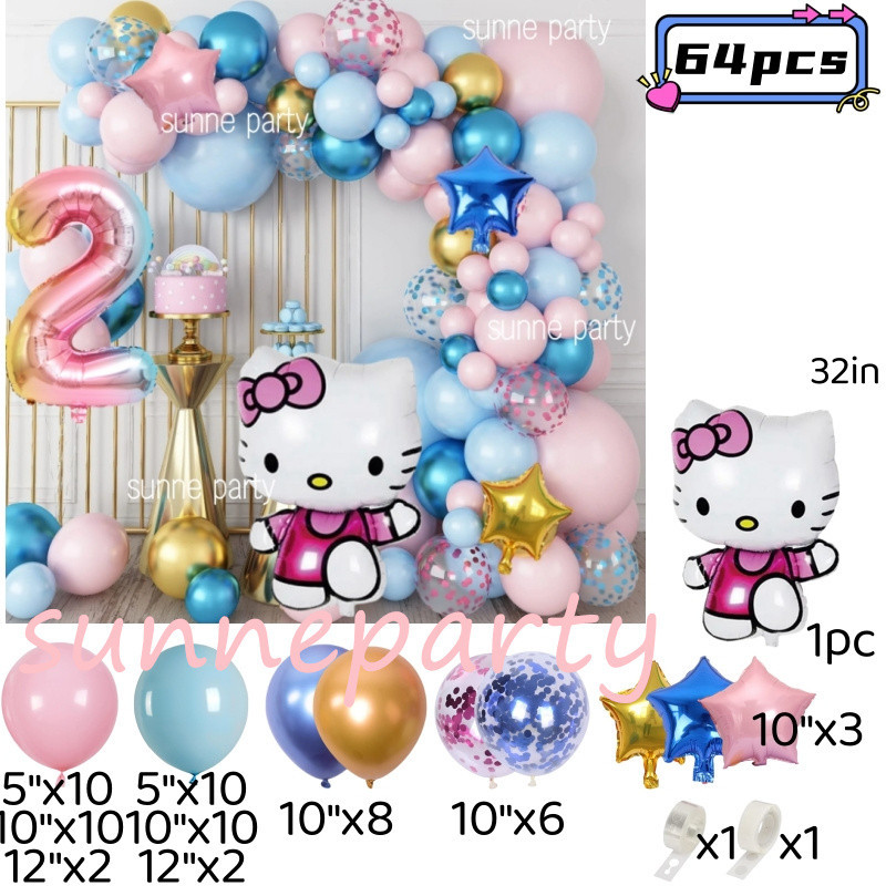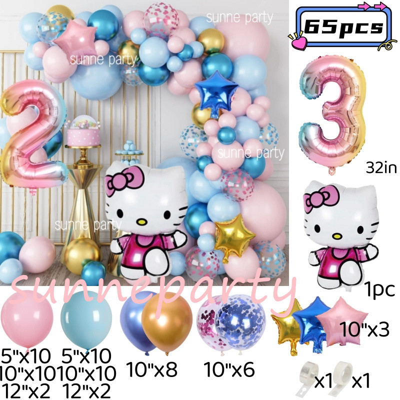 Hello Kitty Balloons Party Decorations Garland Arch Kit 32inch Number Balloon Pink Kitty Foil Balloon for 0-9th Birthday