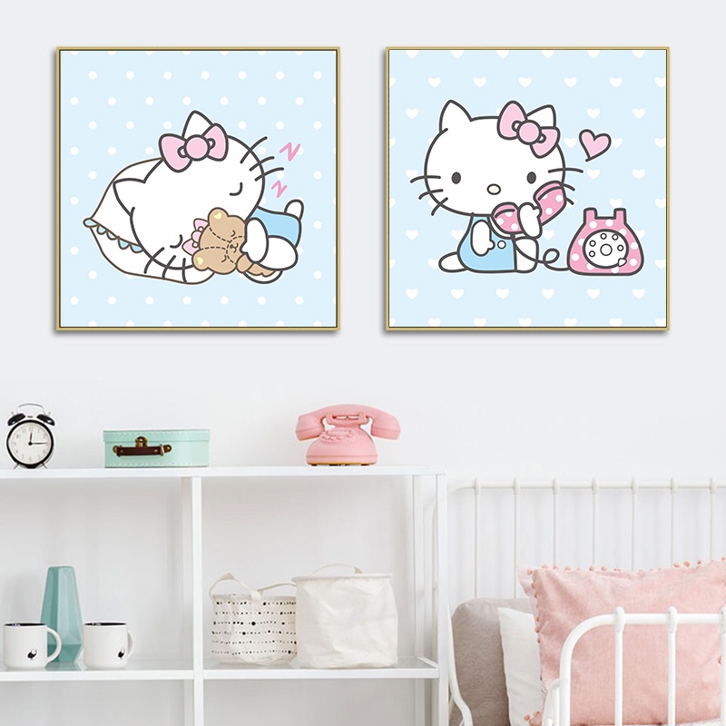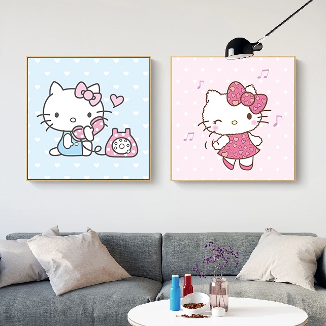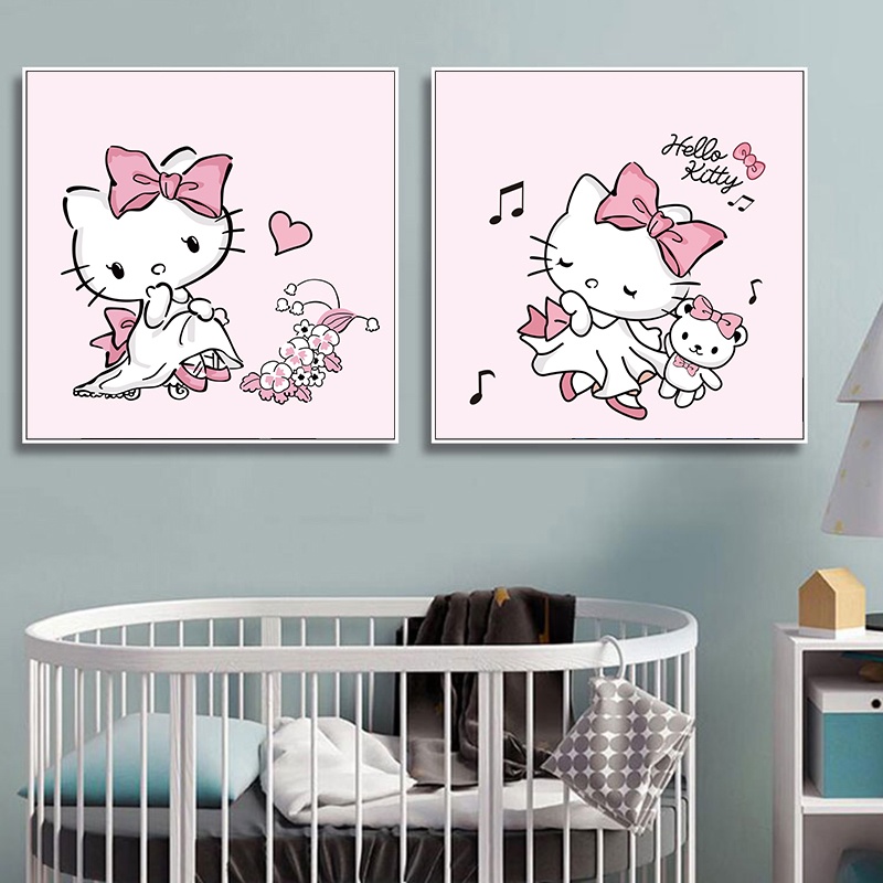 Hello Kitty Canvas Painting Poster Japanese Classic Anime Cute Creative Prints for Home Bedroom Children Room Decor Frameless